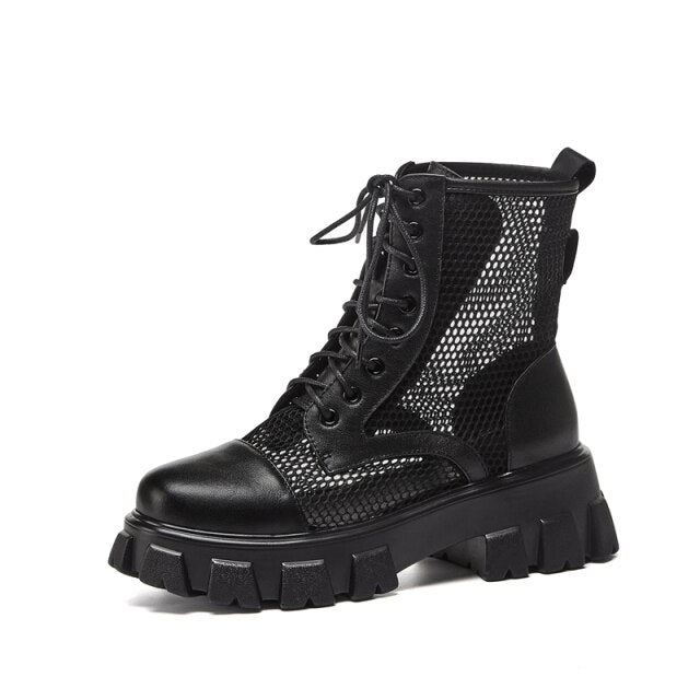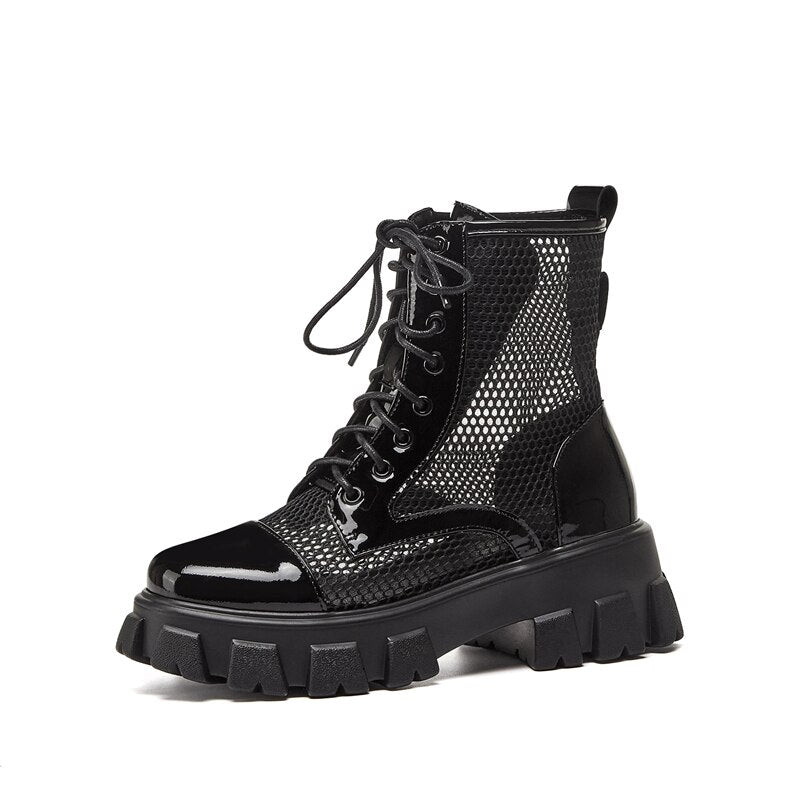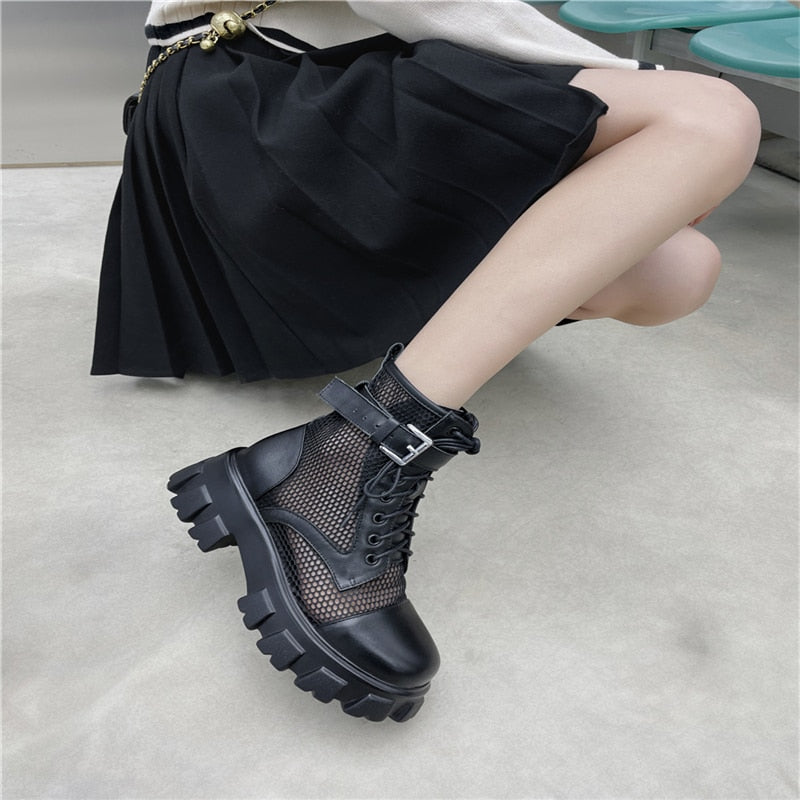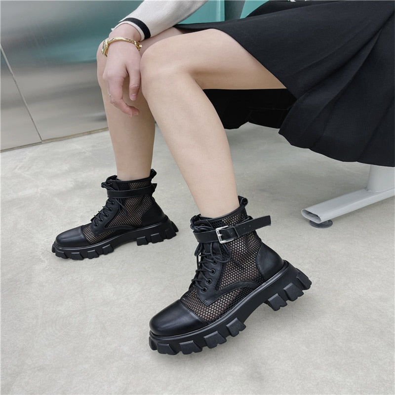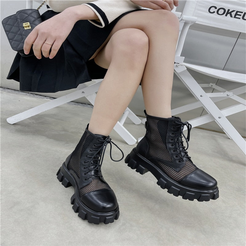 Round Toe Platform Cross-Tied Women Ankle Boots