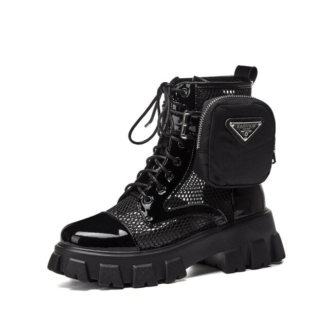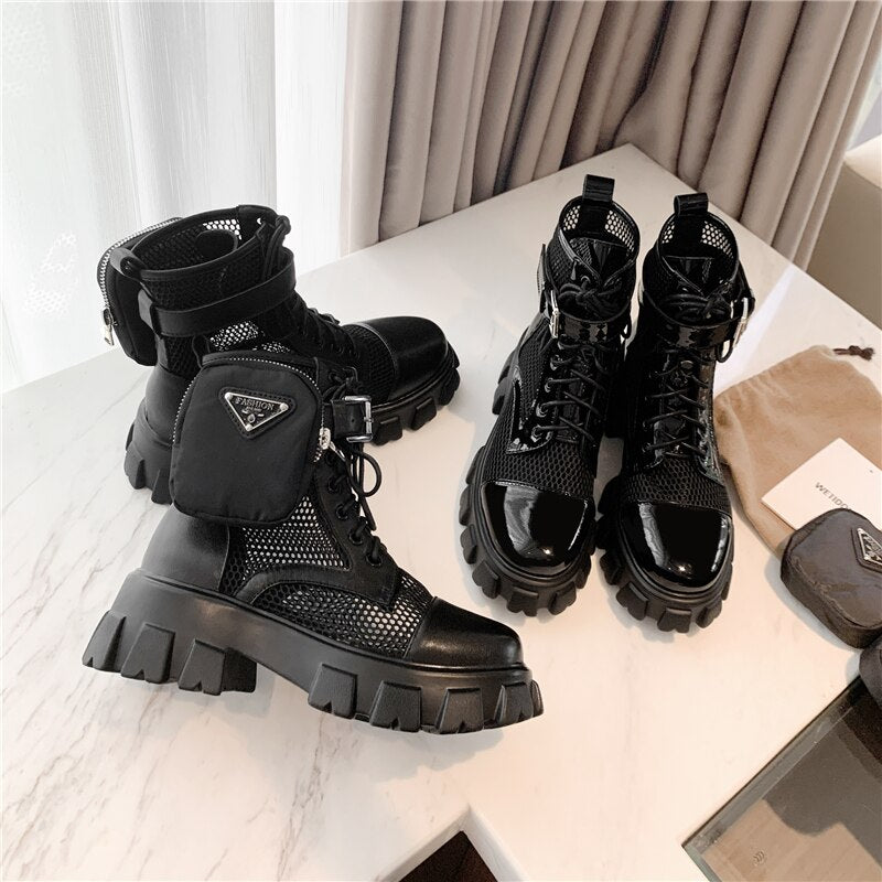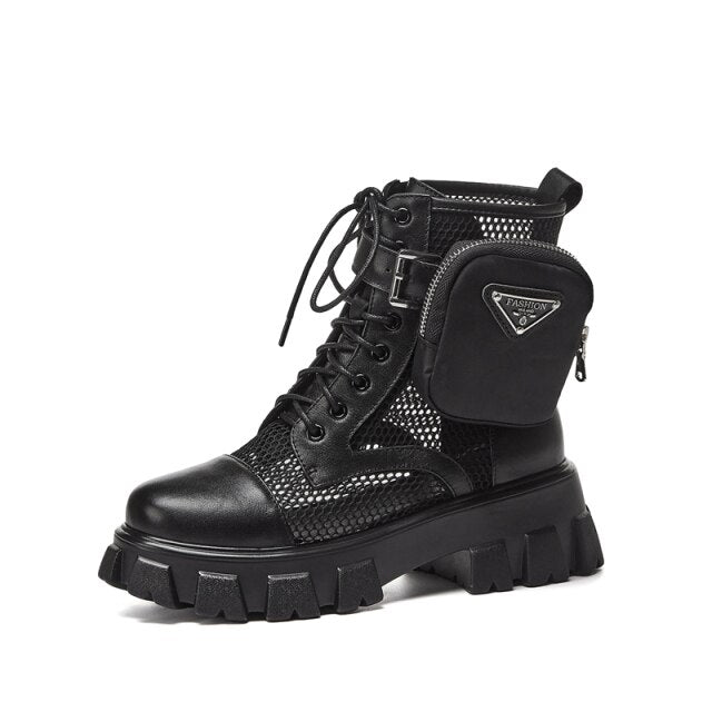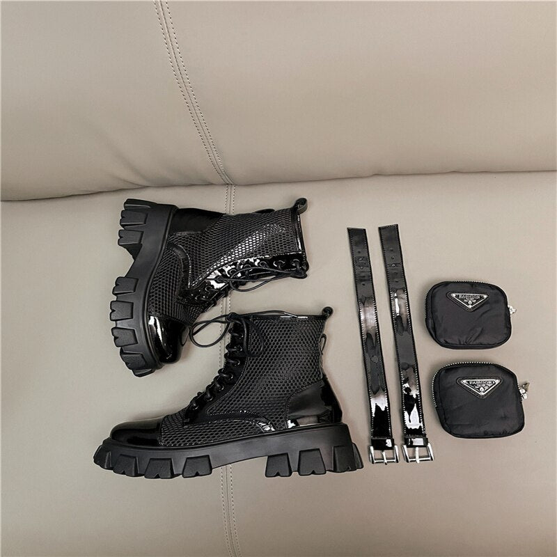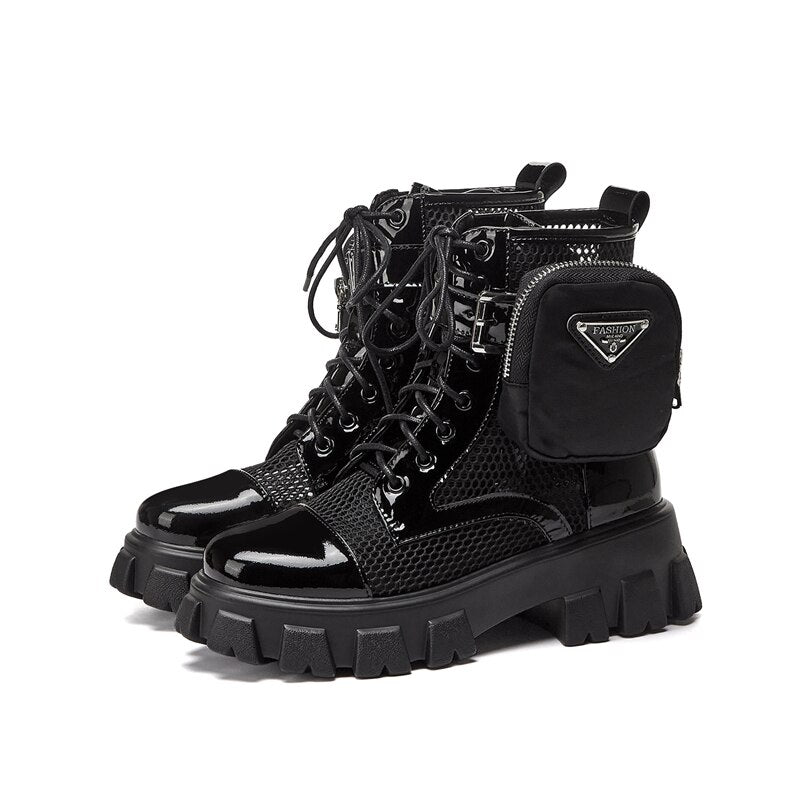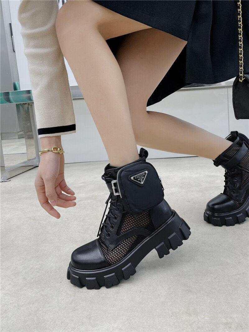 Round Toe Platform Cross-Tied Women Ankle Boots