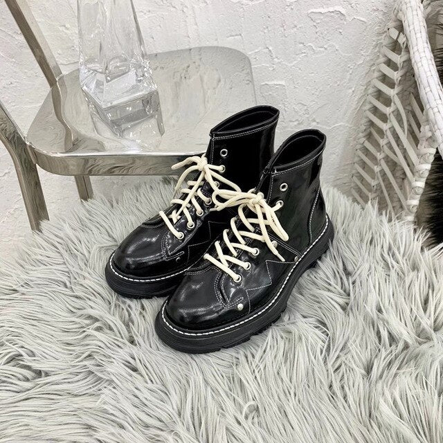 Martin Boots women Shoes Scarpe Donna Round Toe Ankle Boots Med Heel Ladies Boots Cross-Tied Female Shoes Plush Botas Mujer