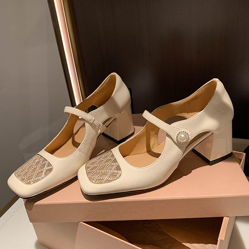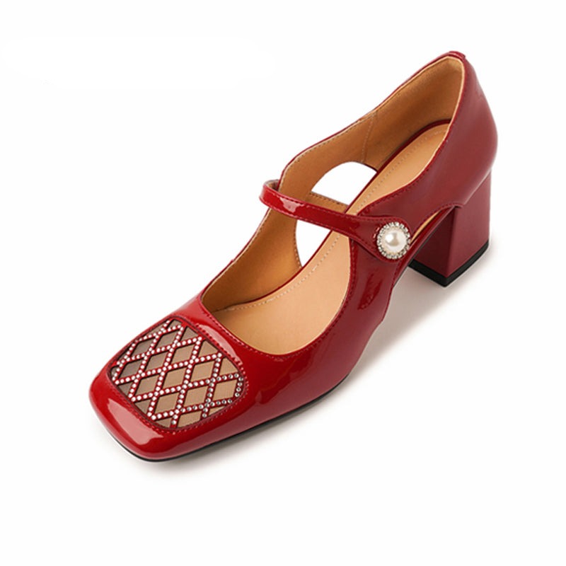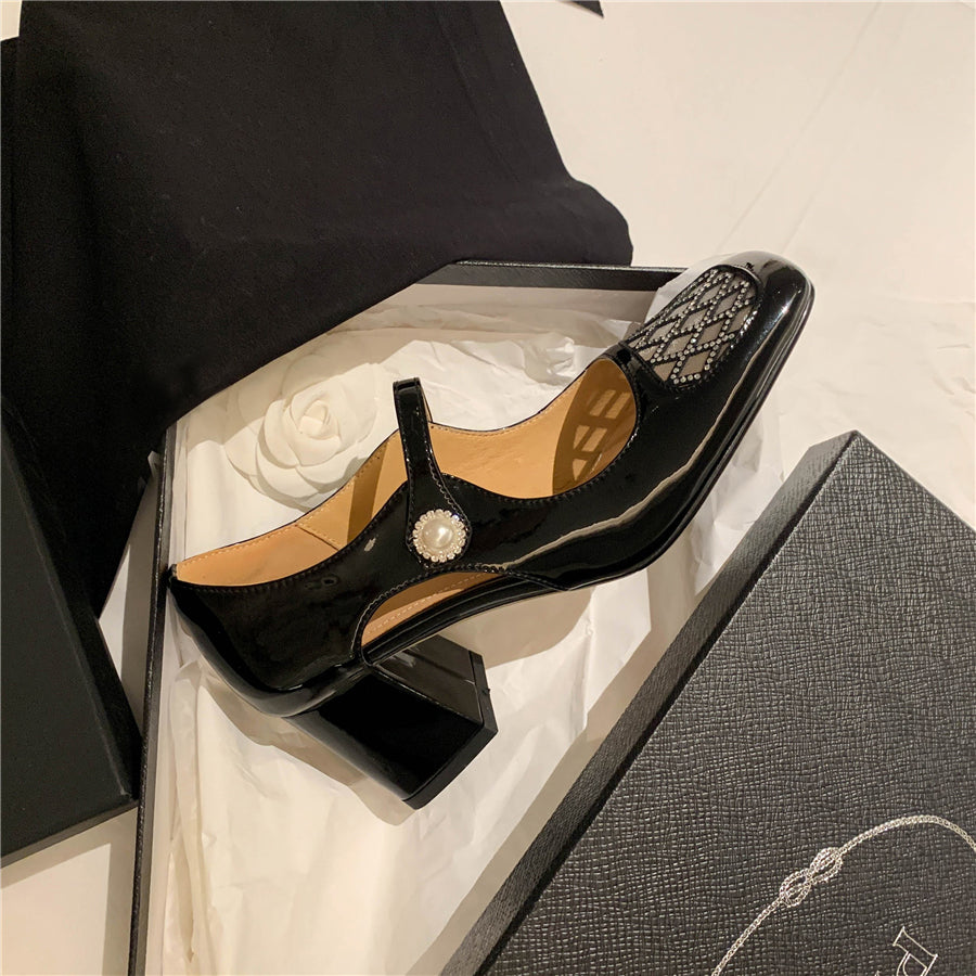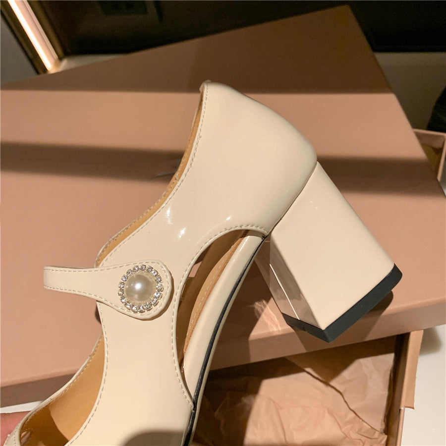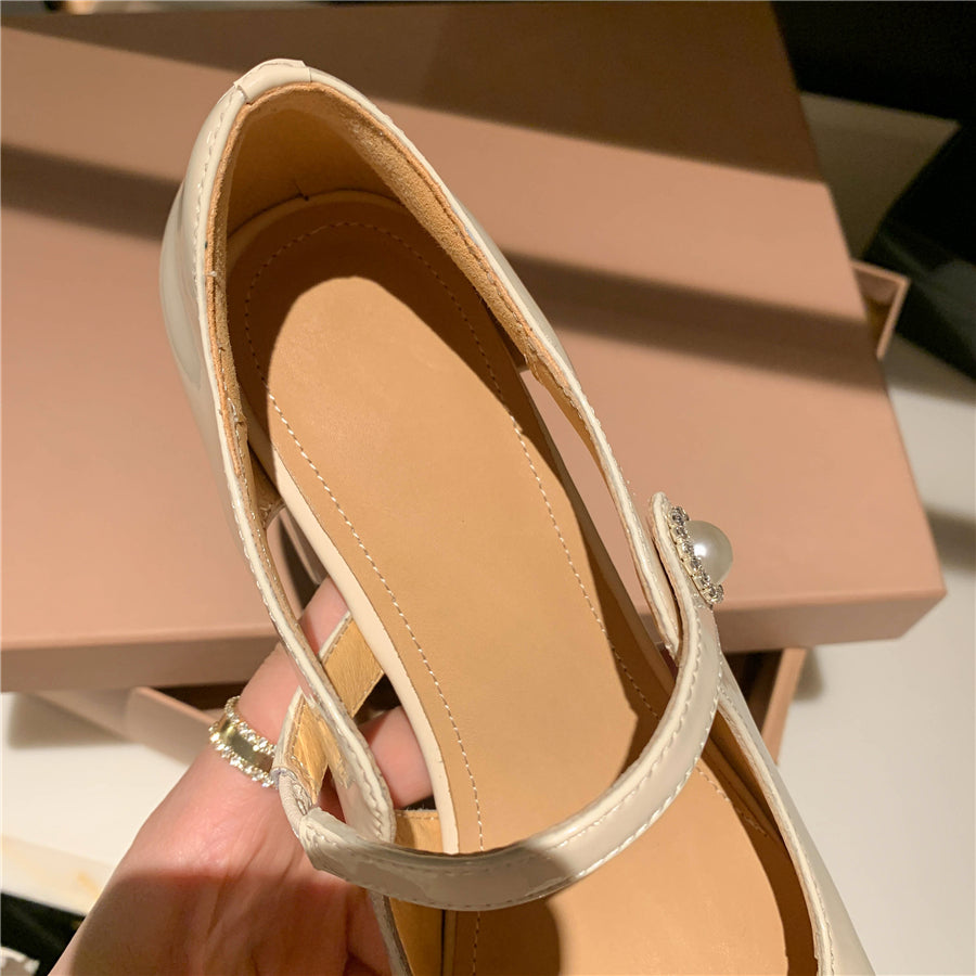 Woman‘s 2022 New Mary Janes Sandals Genuine Leather Buckle Thick-soled Summer Shoes Retro Pointed Toe Lady Footwear Shoes