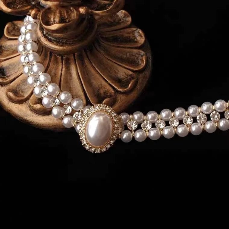 Medieval vintage multi-layer diamond Baroque pearl necklace choker jewelry