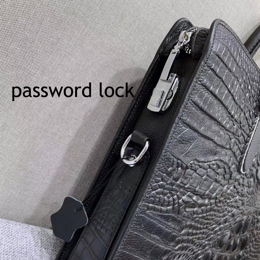 Password Lock Zipper Design Business Style Large Men Handbag Crocodile Cowhide Leather A4 Brifcases Bag Laptop Shoulder Bag