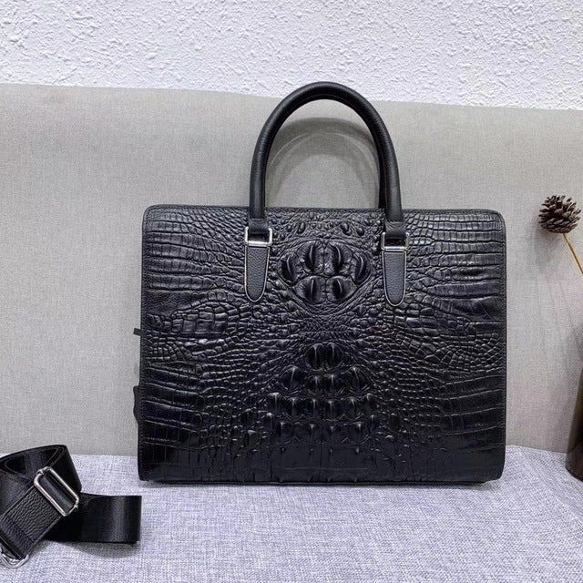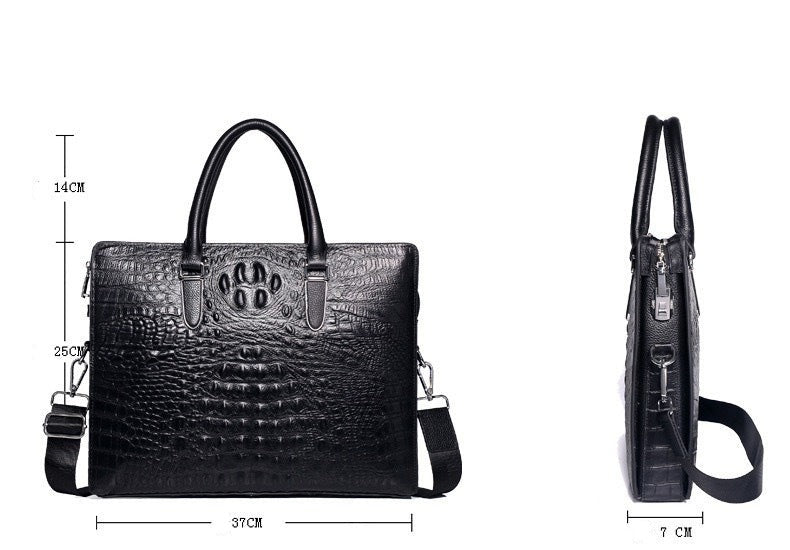 Men Handbag Crocodile Cowhide Leather Laptop Shoulder Bag