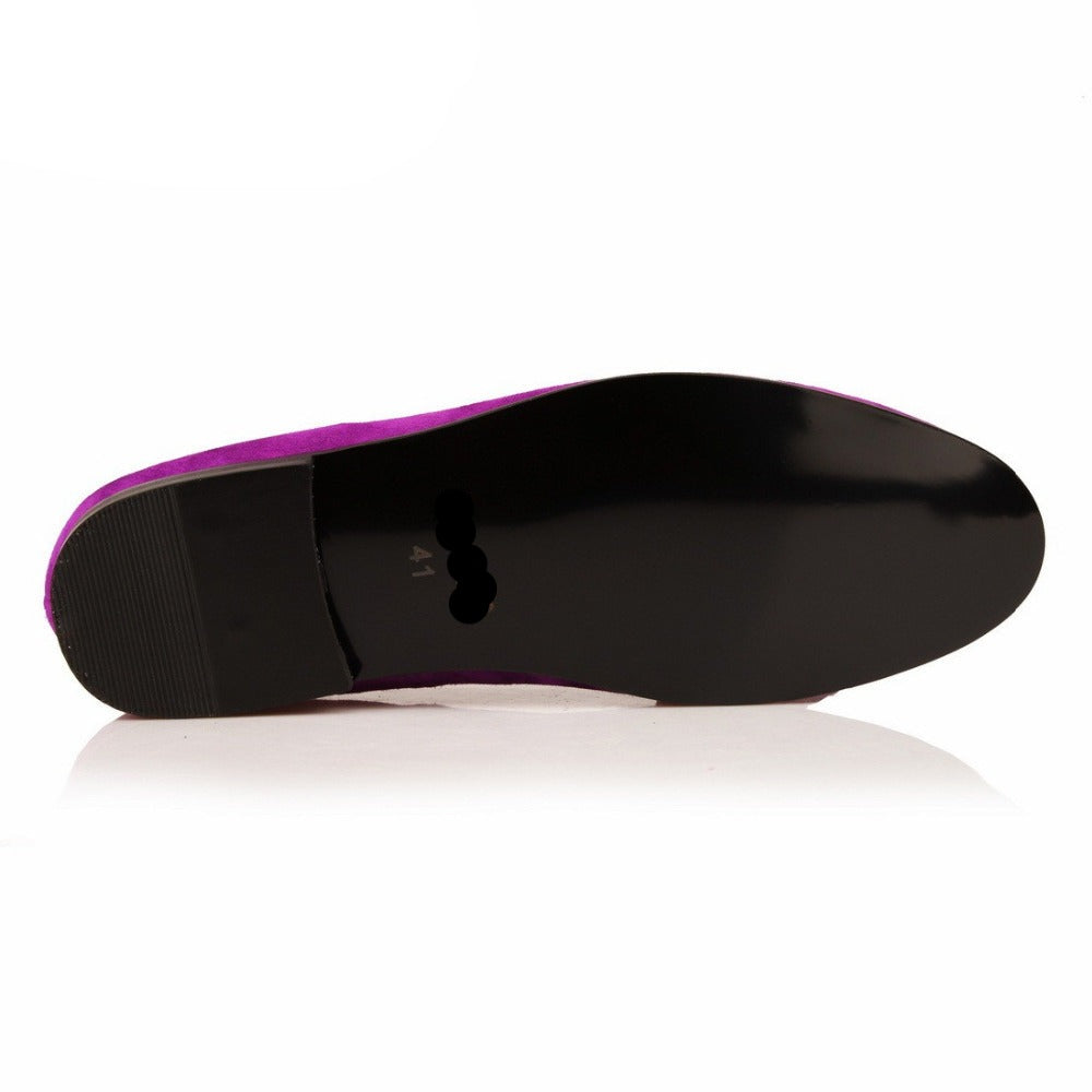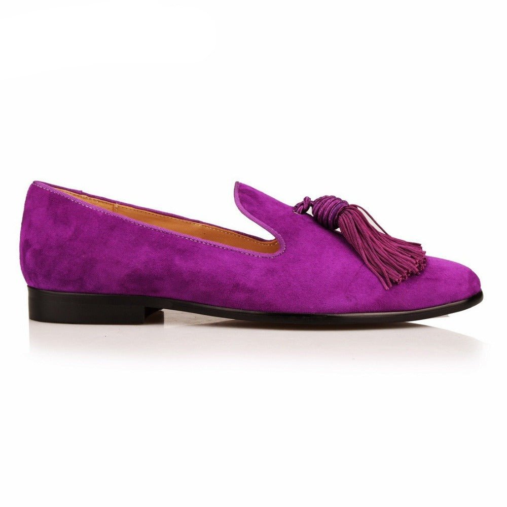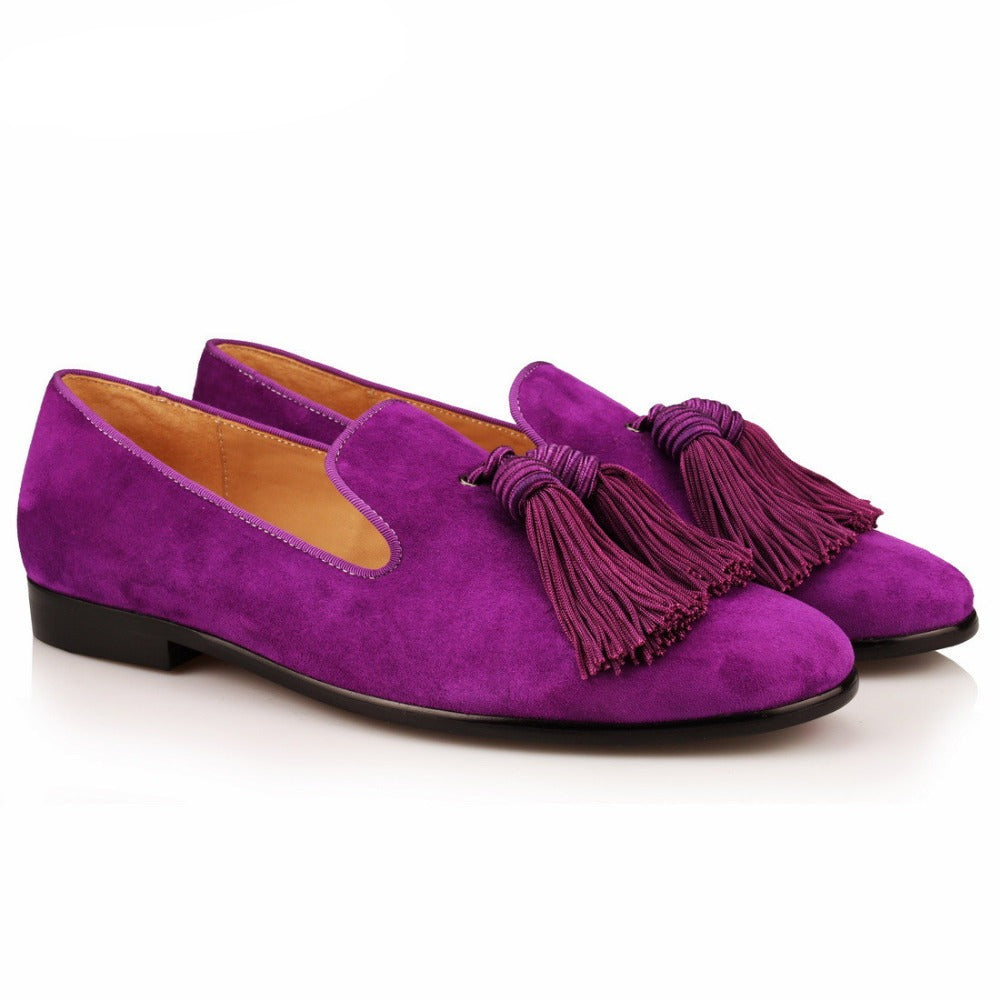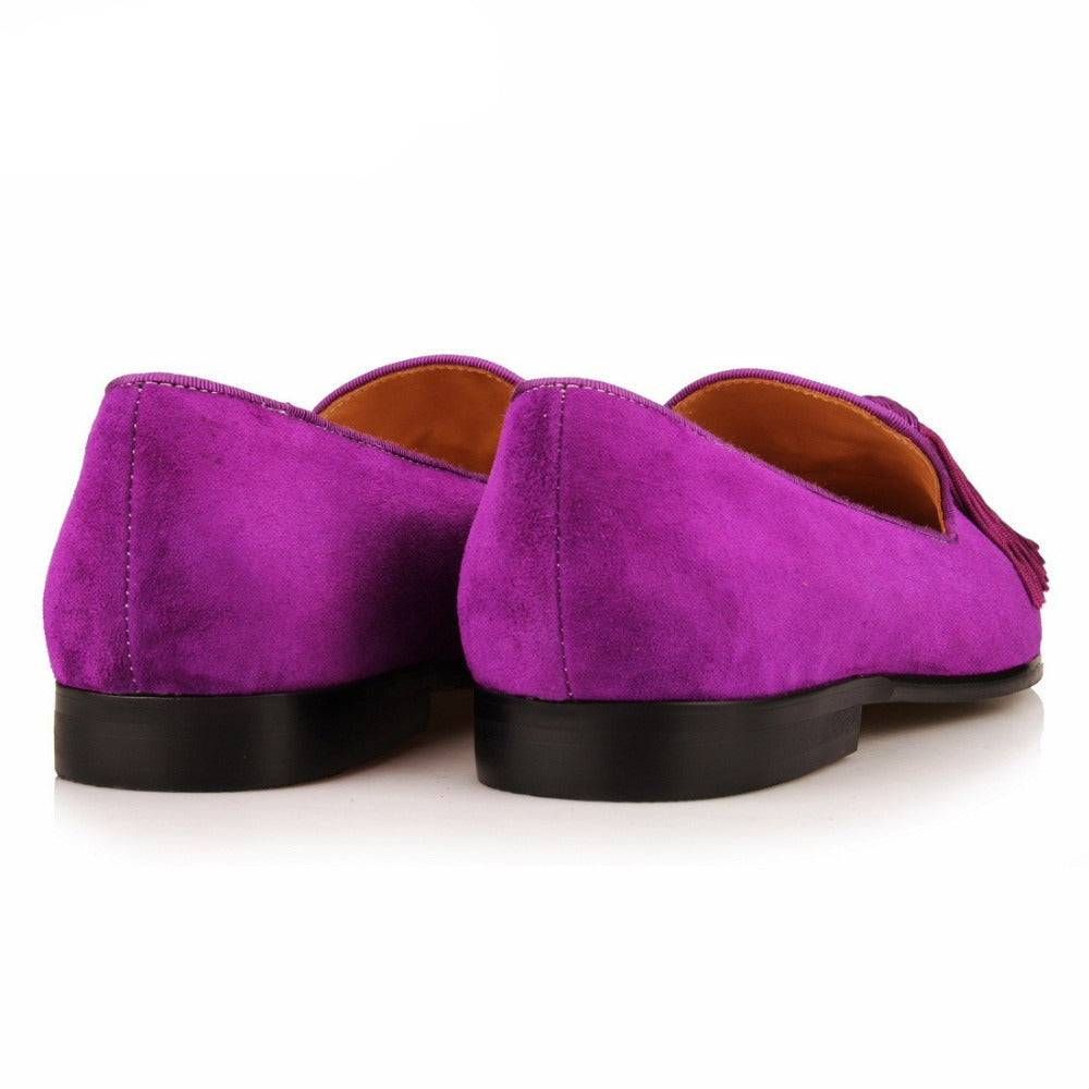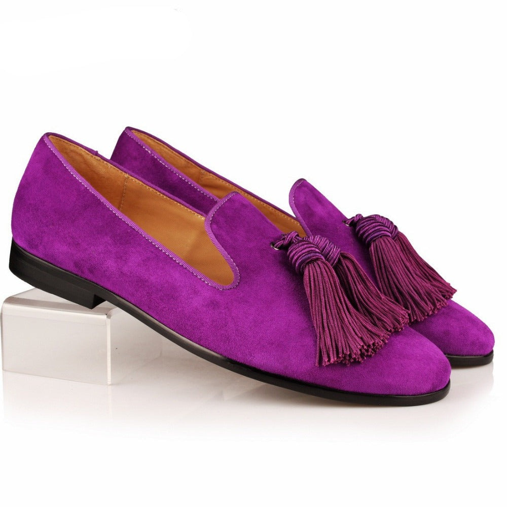 Men Handmade Shoes Purple Suede Loafers Tassels