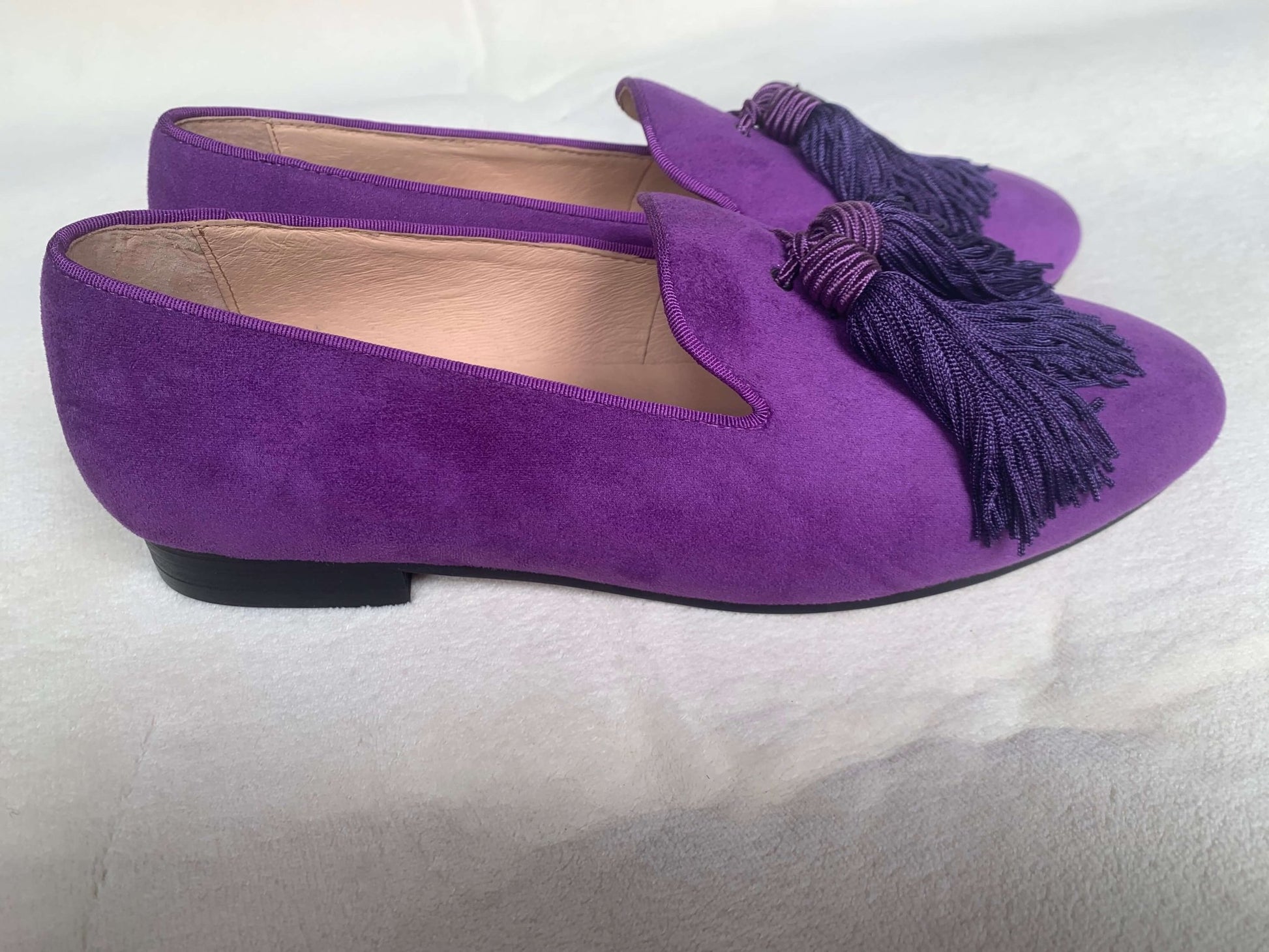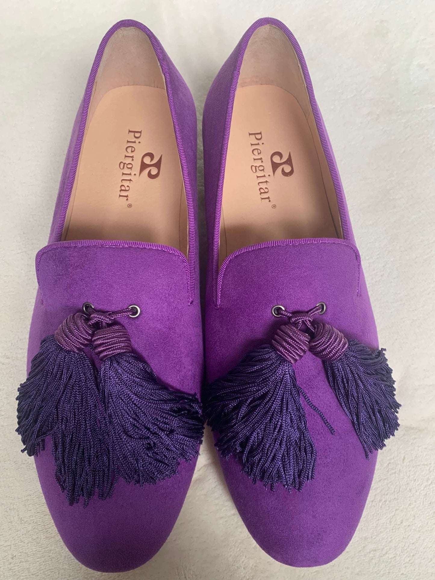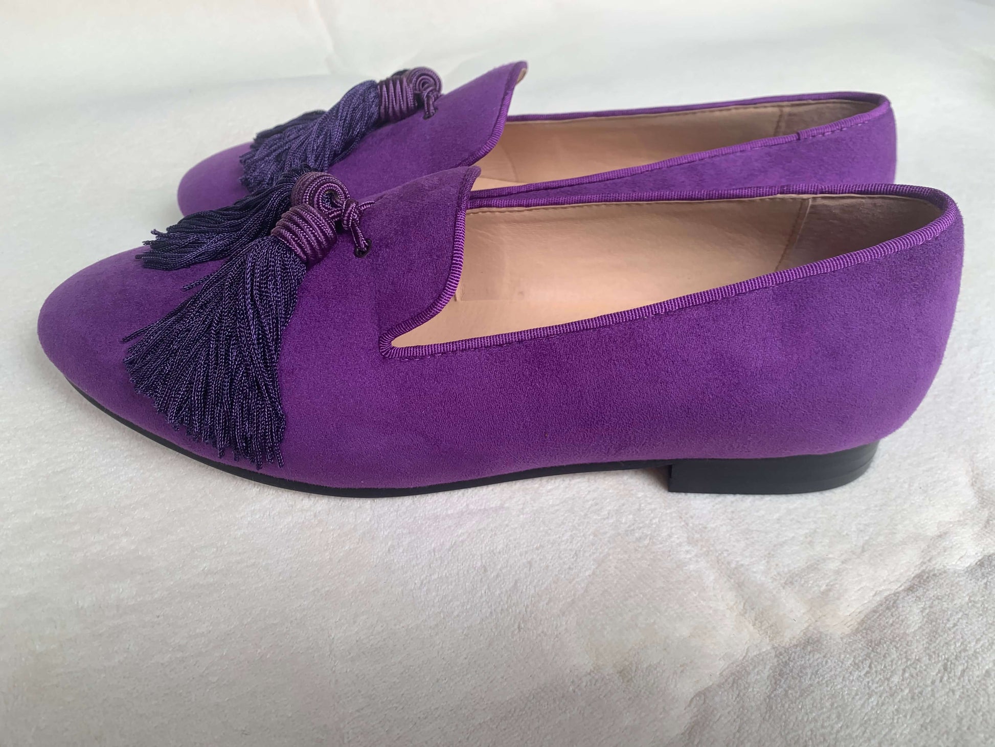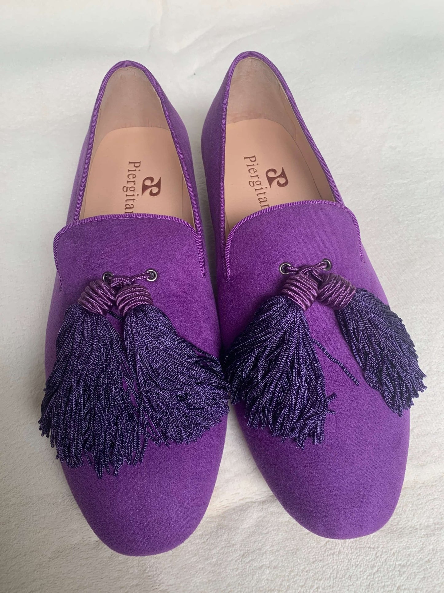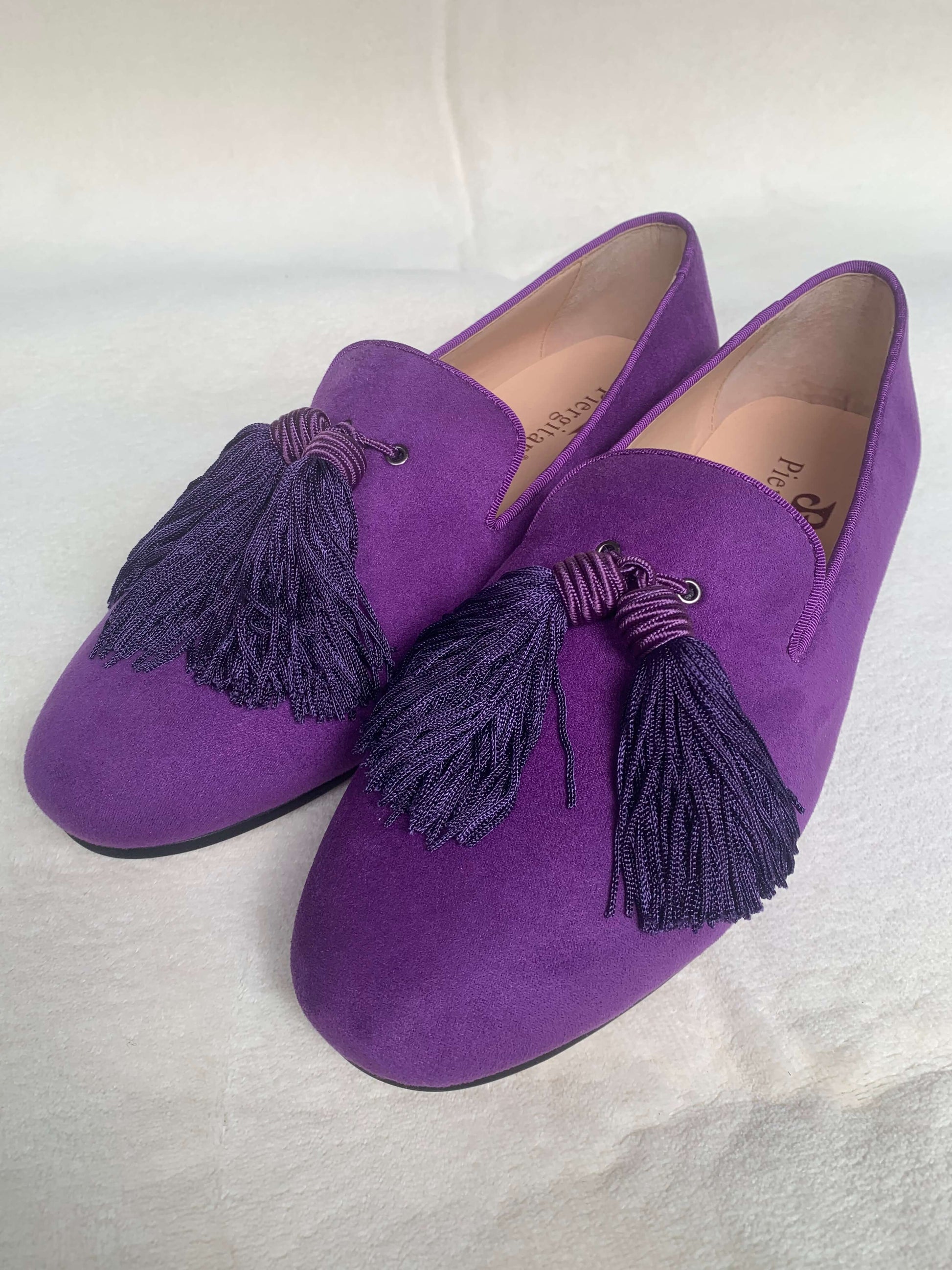 Men Handmade Shoes Purple Suede Loafers Tassels