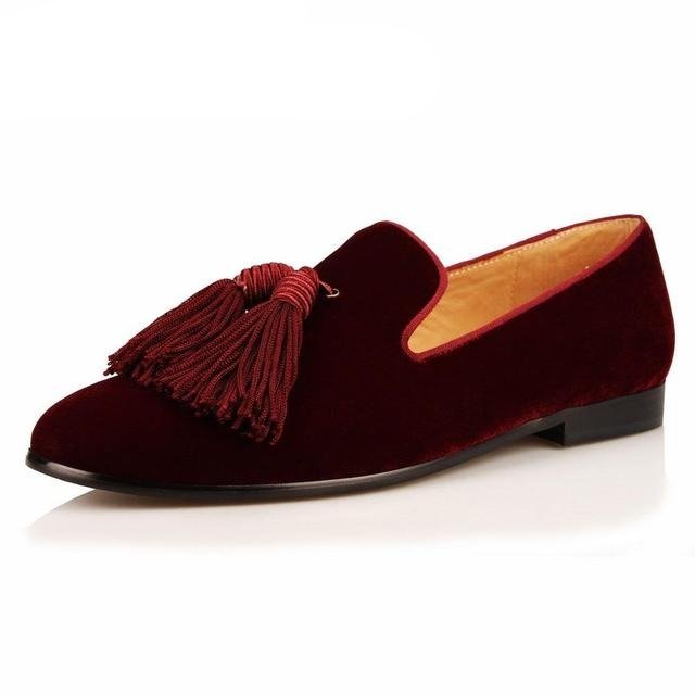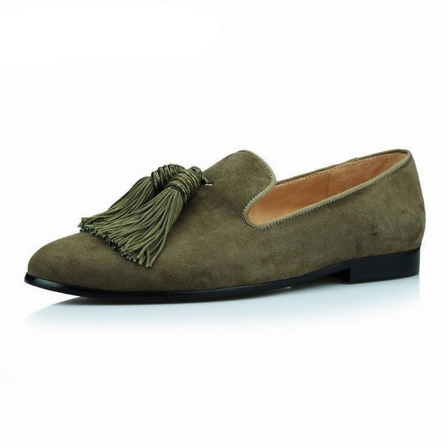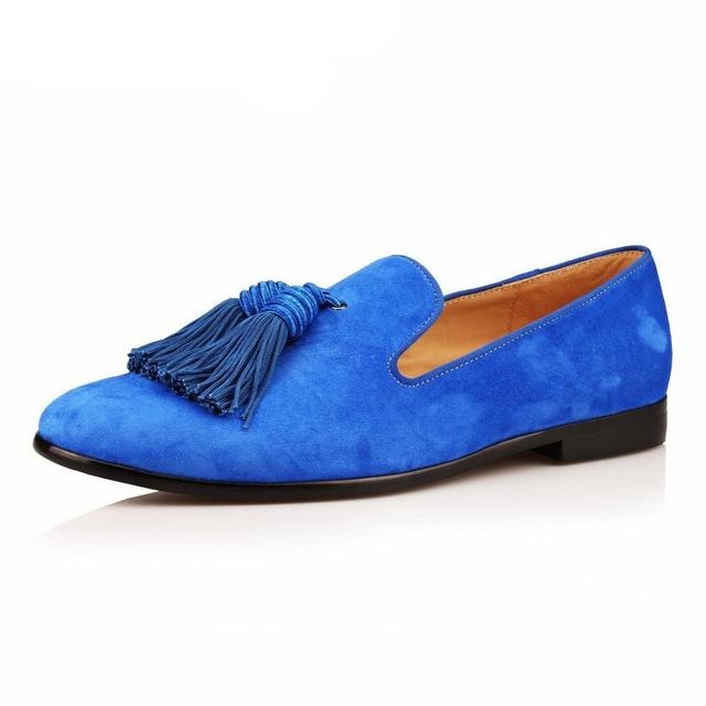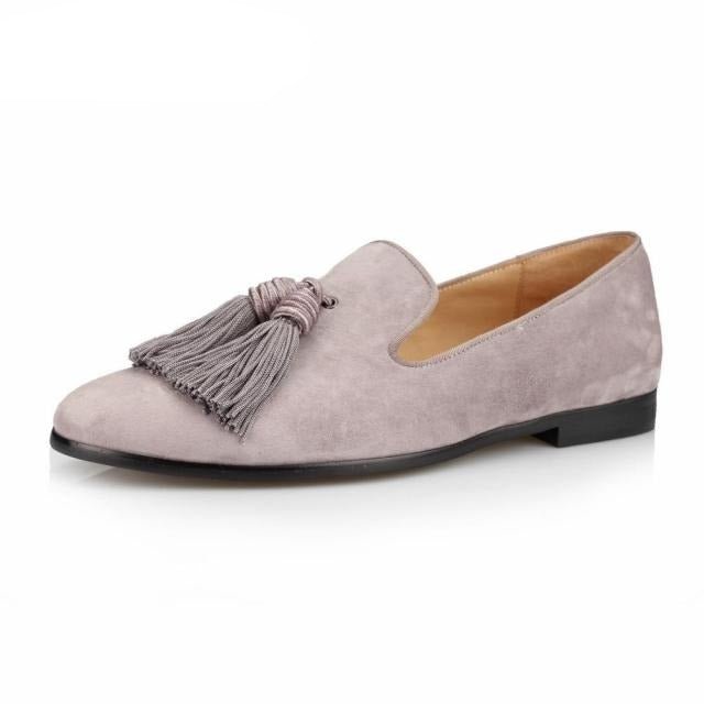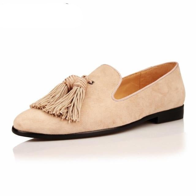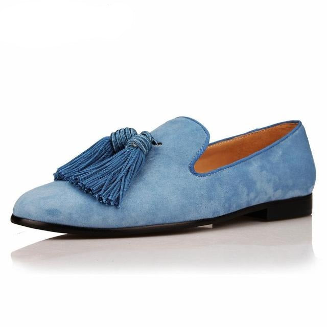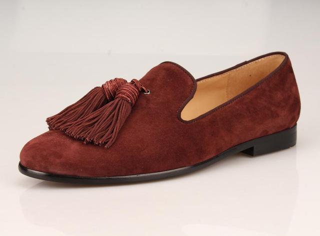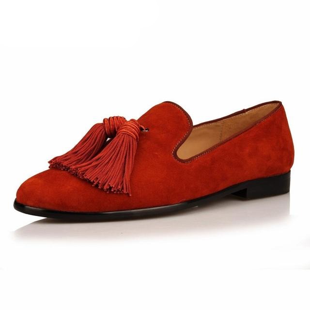 Men Handmade Shoes Purple Suede Loafers Men's Moccasins Tassels Slippers Wedding Dress Shoes Casual Flats Real Leather