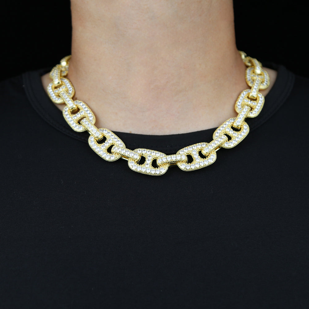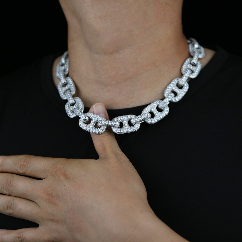 Bling Coffee Bean CZ Paved 19MM Choker Link Chain Necklaces For Men Iced Out Sparking Cubic Zirconia HIP HOP Fashion Jewelry