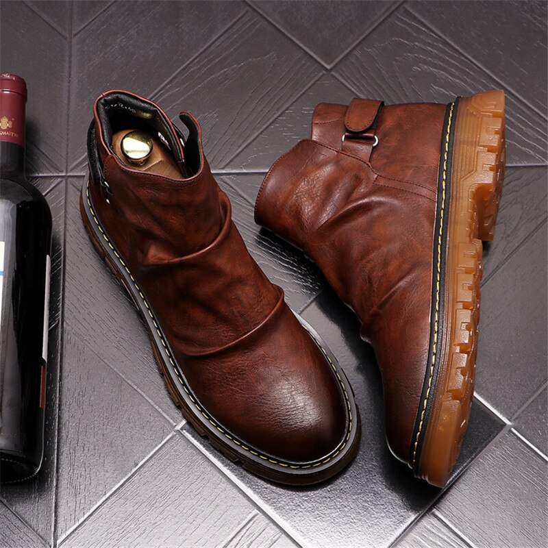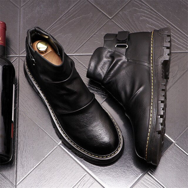 Men Martin Shoes Flats Chelsea Ankle Boots
