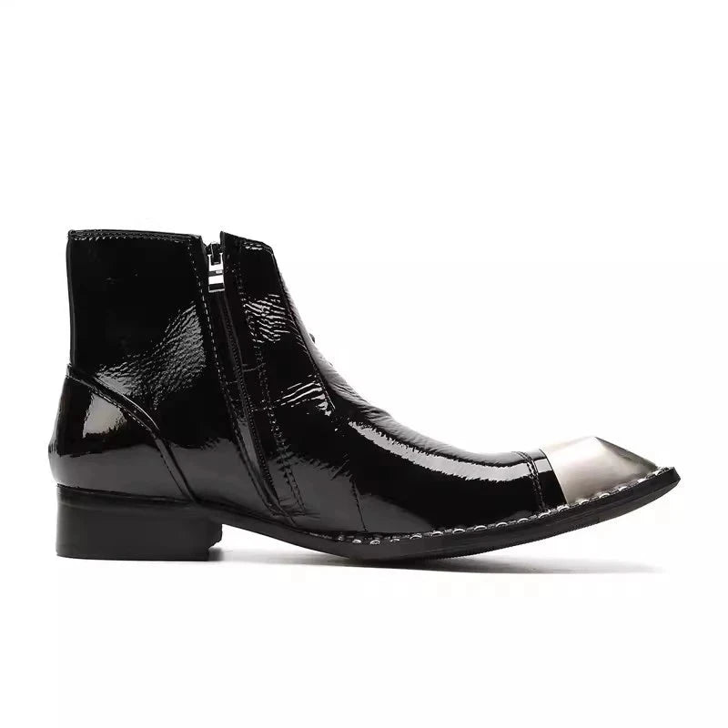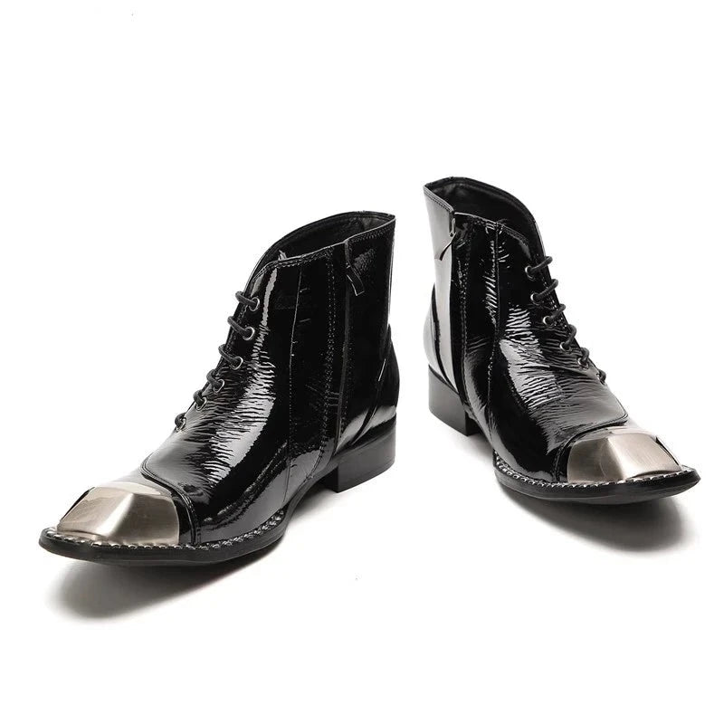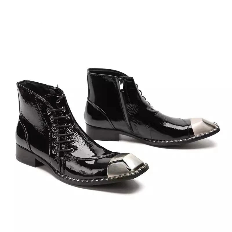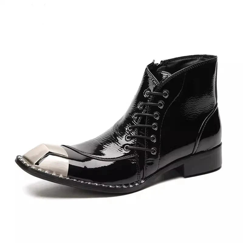 Men Metal Square Toe Rivets Lace Up Business Black Genuine Leather Boots