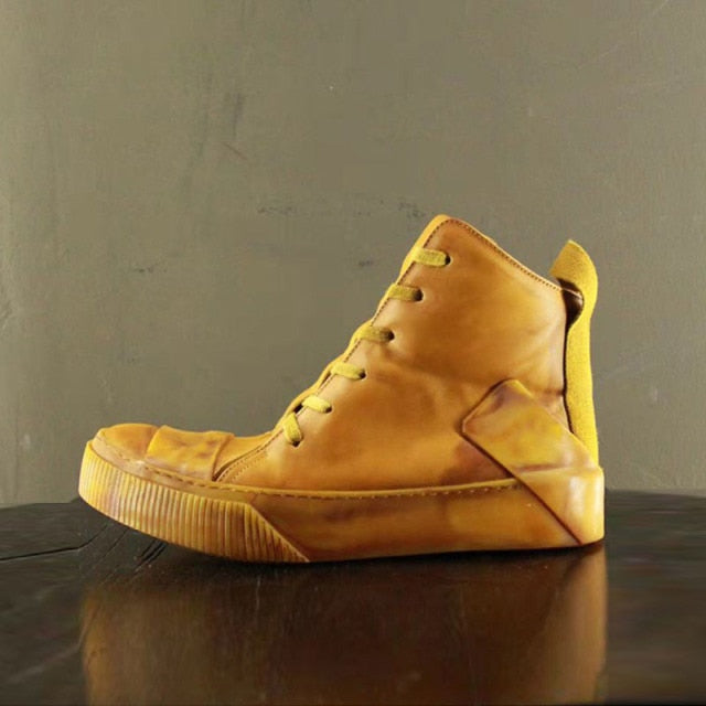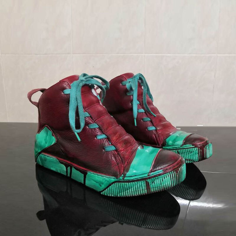 Men Handmade Platform Mixed Color Spliced Ankle Boot
