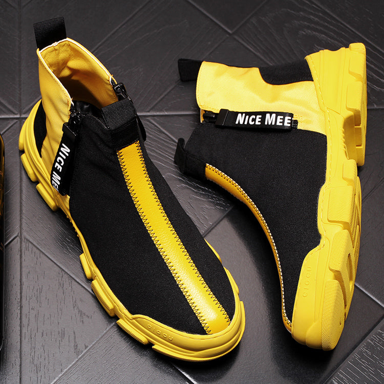 Mens Luxury British High Top Casual Shoes Fashion Slip On Elastic Flock Vogue Short Ankle Sock Style Hip hops man