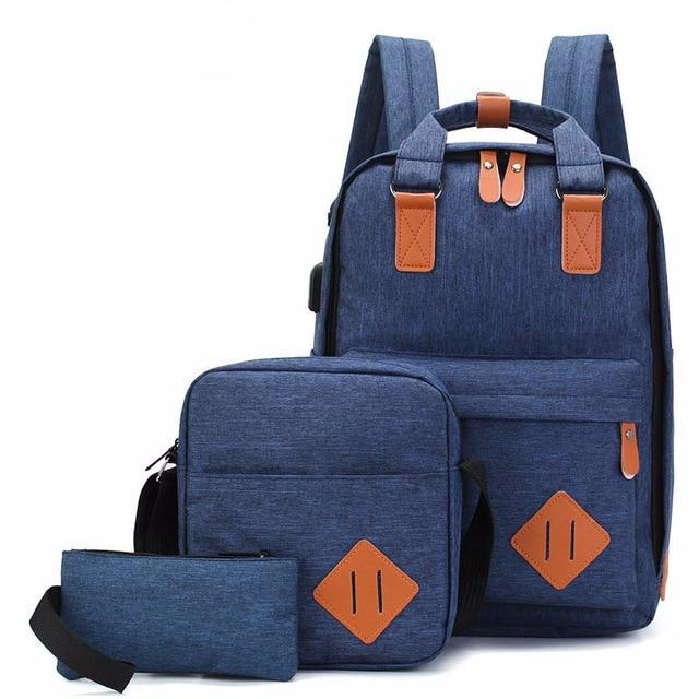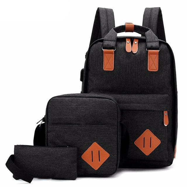 Men's Backpack Bag Male Polyester Laptop Backpack Computer Bags High School Student College Students USB Charging 3 Pieces