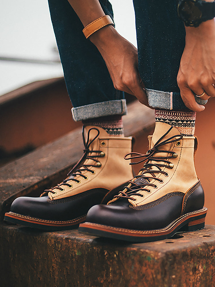 Men's color matching shoes high-end wings quality motorcycle men's boots singer knight punk shoes men