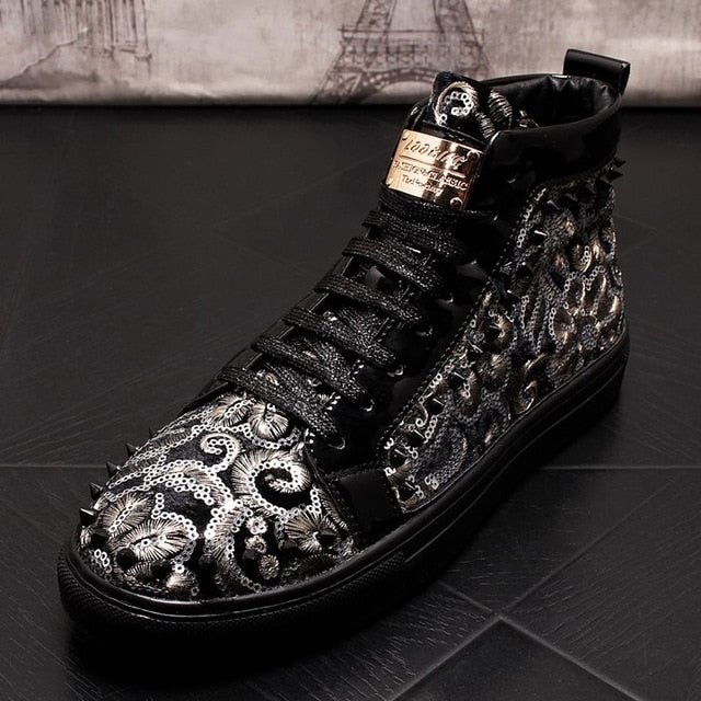 Men's High-top Suede Casual Shoes Men Top Fashion Sneakers Lace-up High Style Solid Colors Wild Men's Rivet Embroidered Shoes