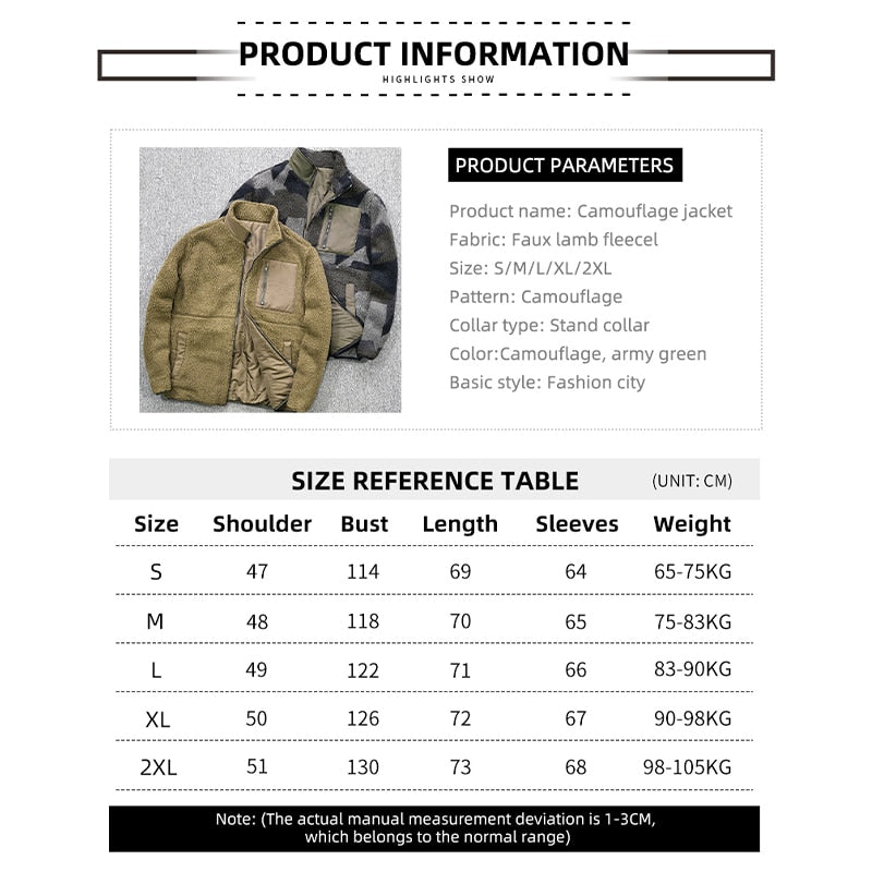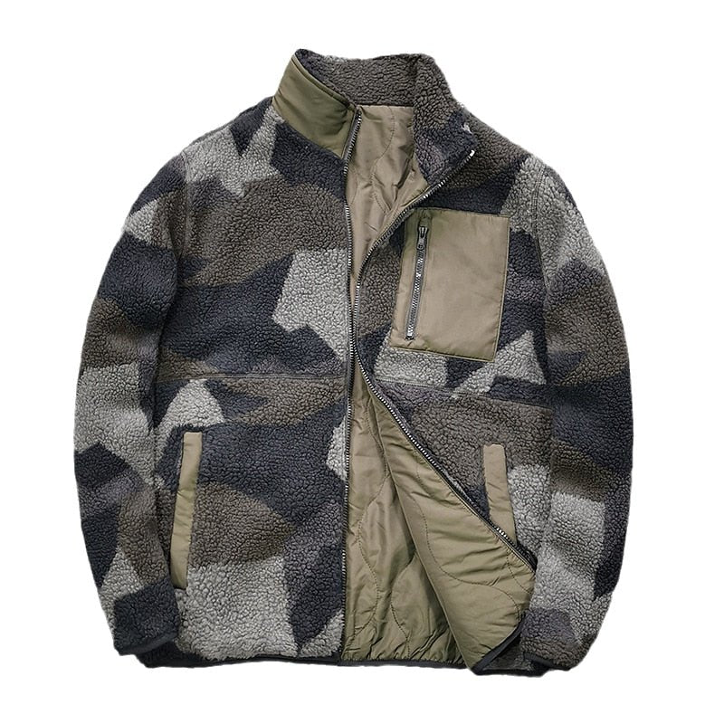 Men's Reversible Camouflage Thickened Cashmere Stand Collar Coat