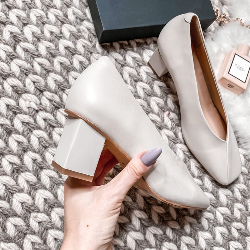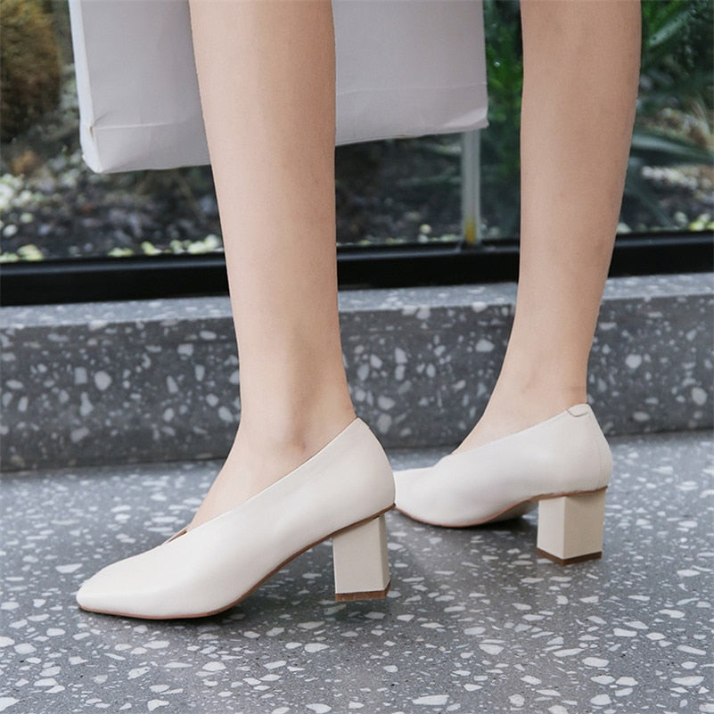 High Heels Women Pumps Natural Genuine Leather Thick High Heel Glove Shoes Real Leather Square Toe Office Lady Shoes 40