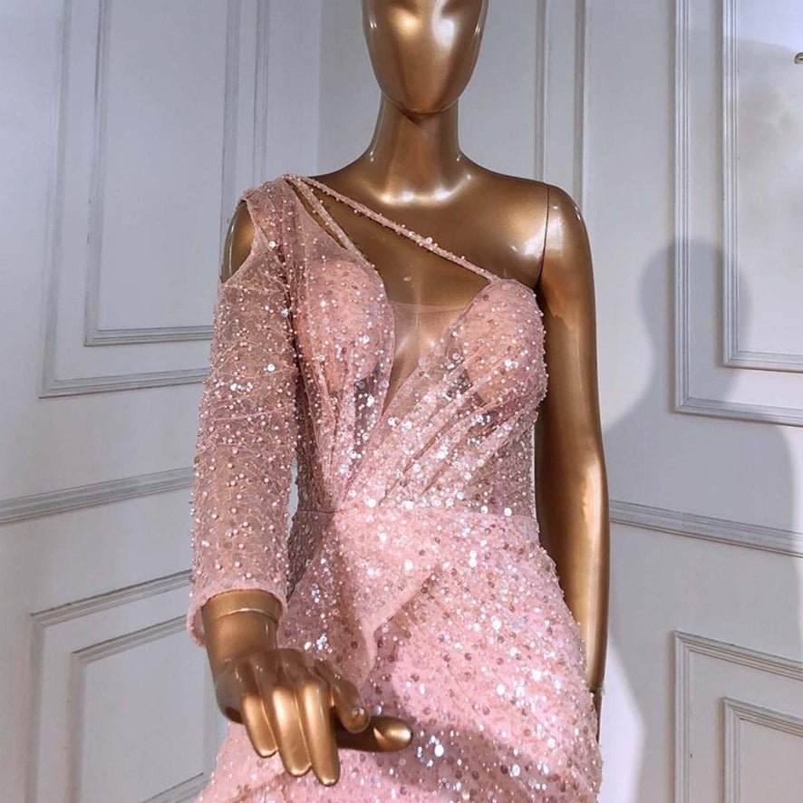 Mermaid Evening Dresses One Shoulder Beaded For Women Party