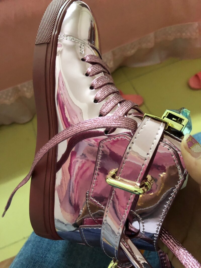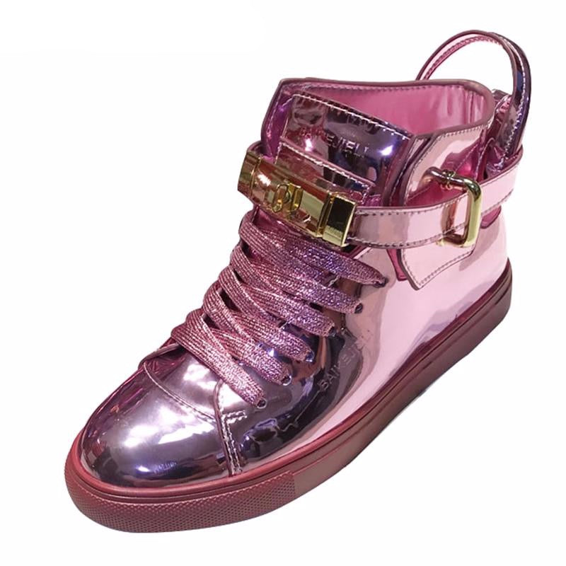 Metallic Flats Elevator Women Wide Fit Shoes Ladies Patent Leather Brand Rose Gold Hidden Trainers Sneakers Creepers High Top