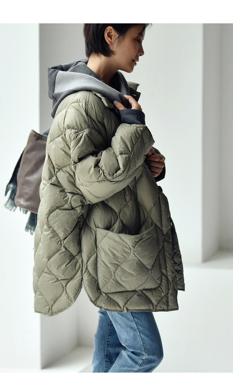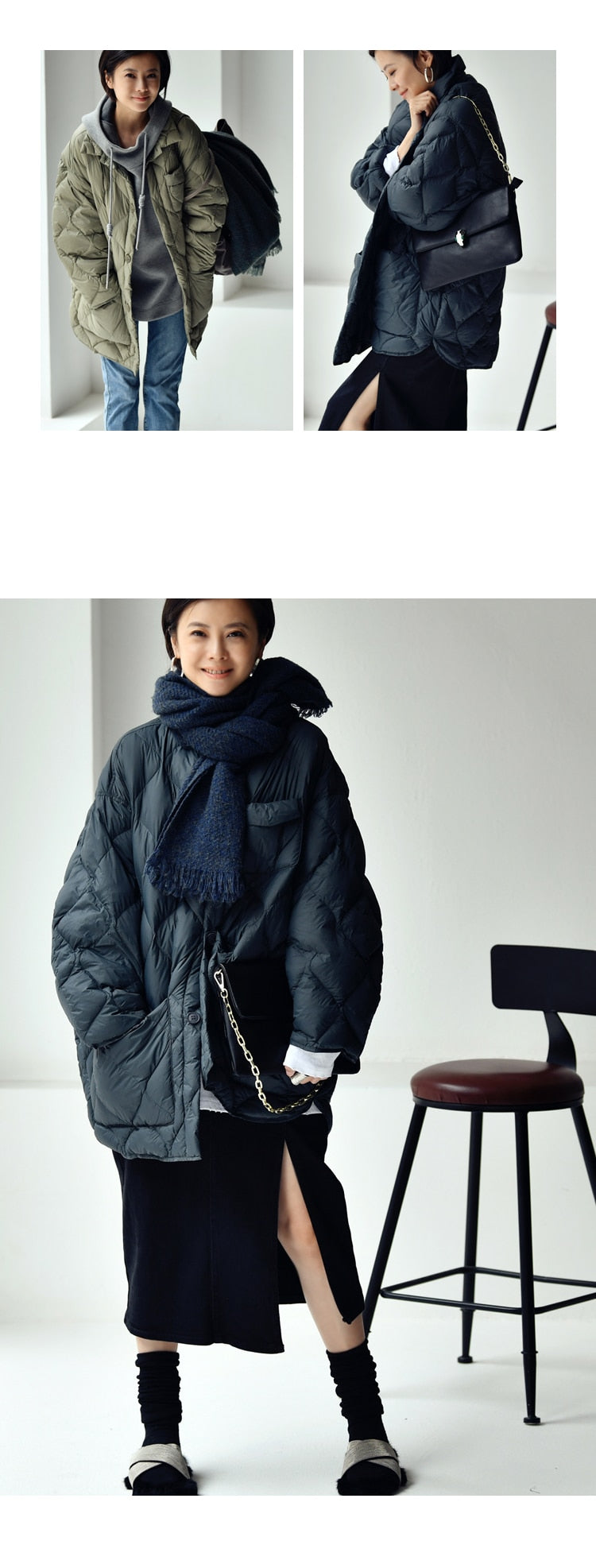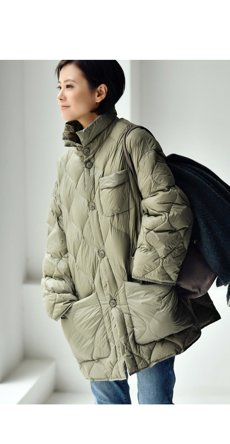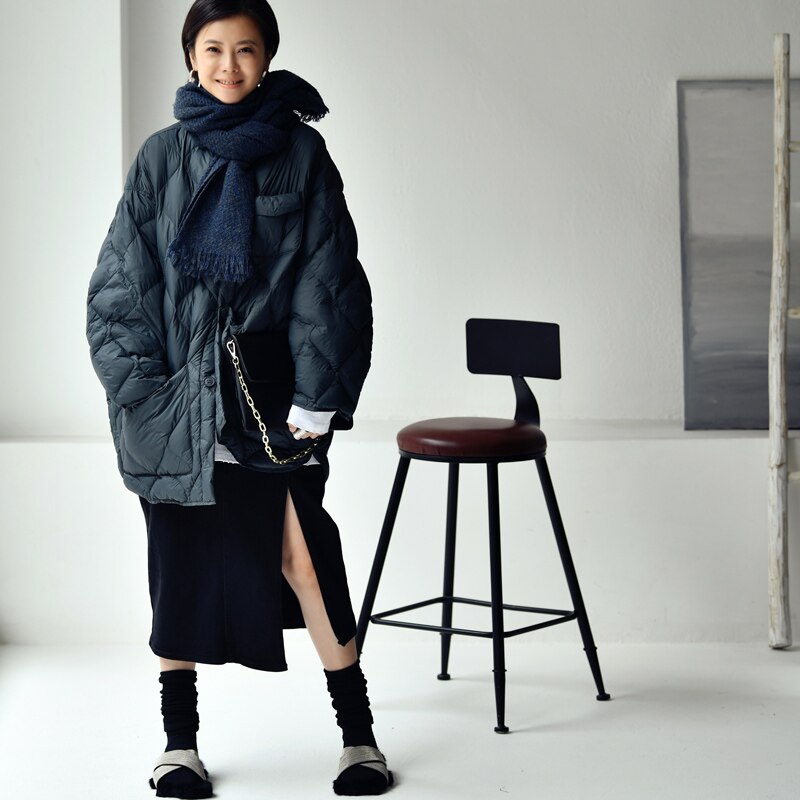 handsome BF wind loose large pocket mid-lengh Down jacket