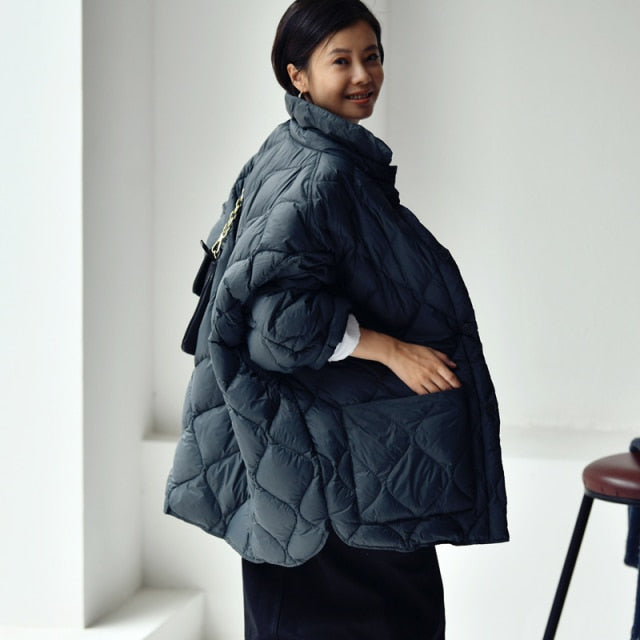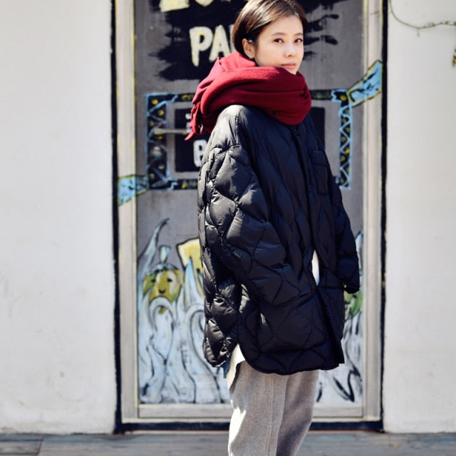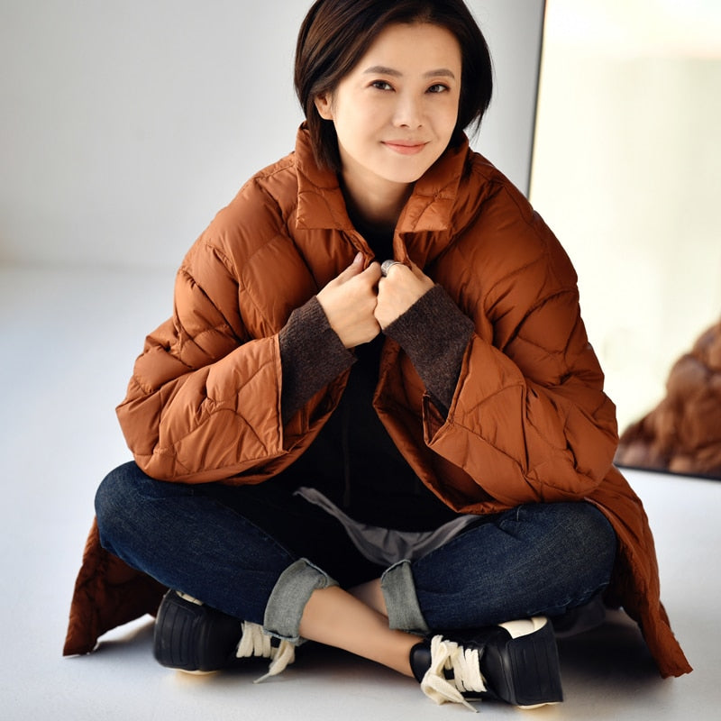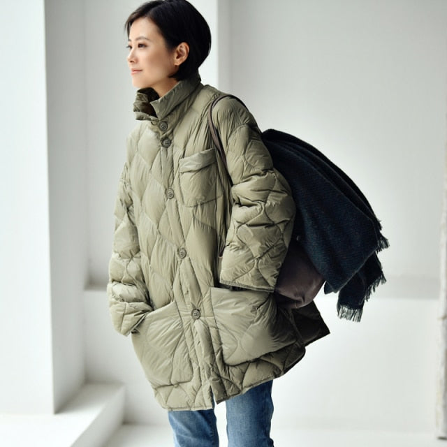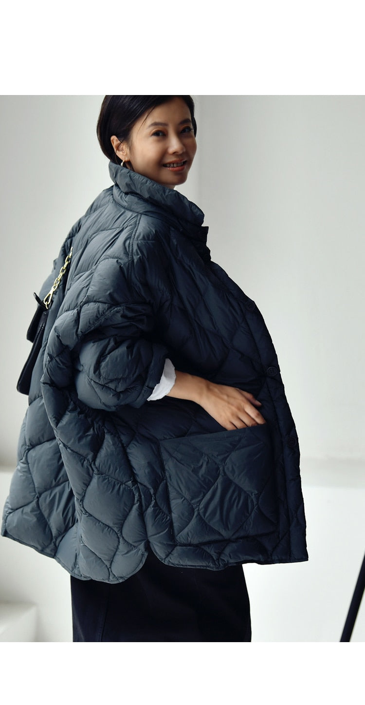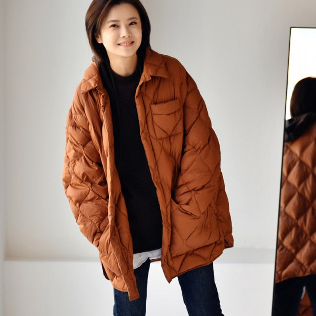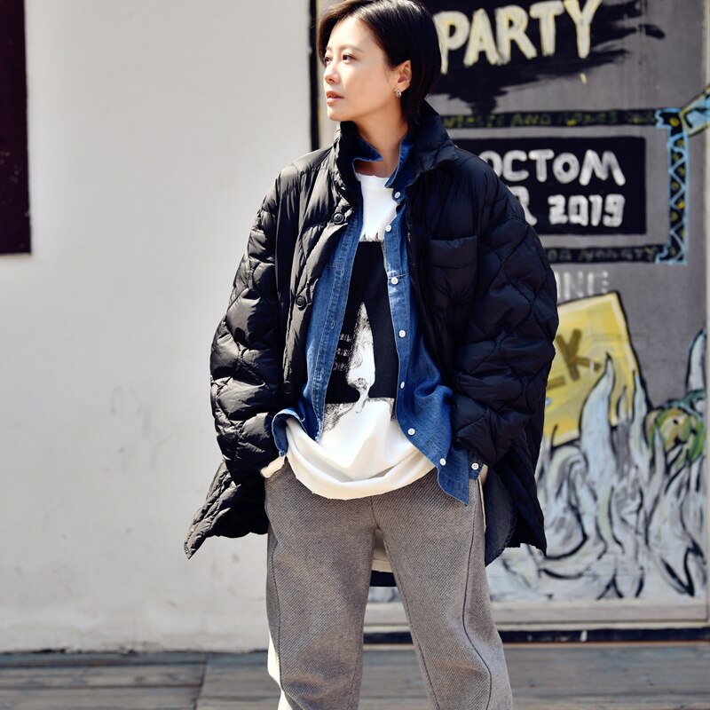 handsome BF wind loose large pocket mid-lengh Down jacket
