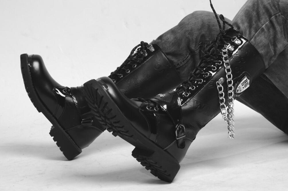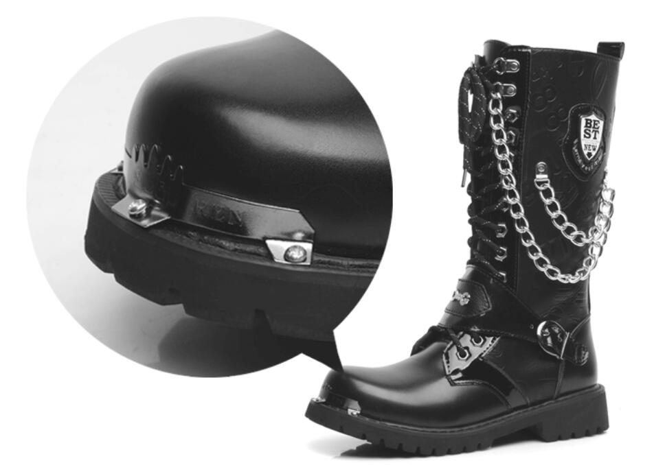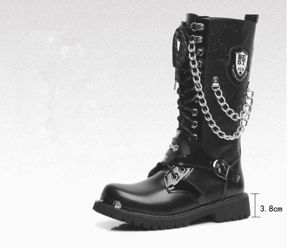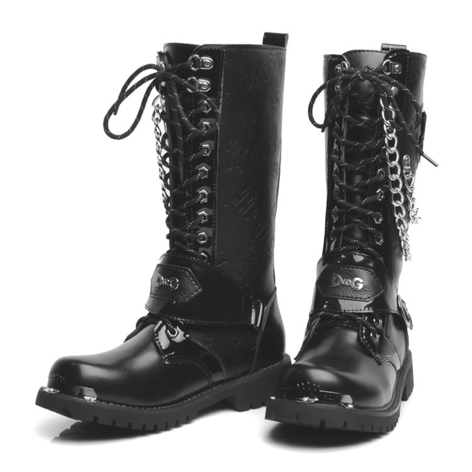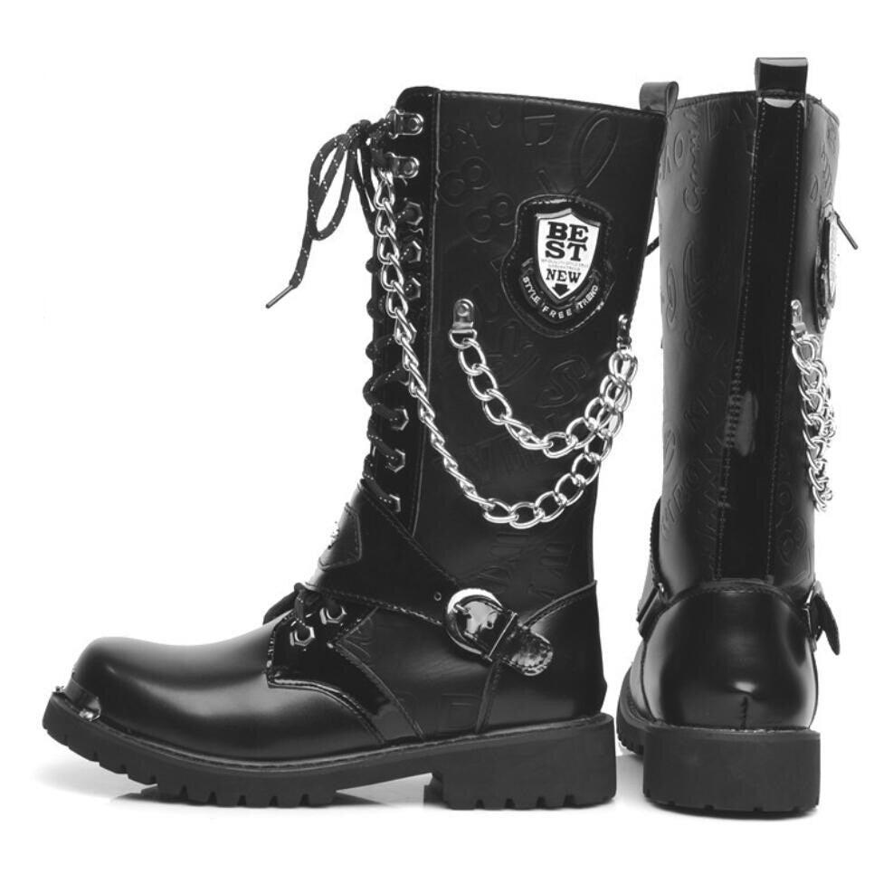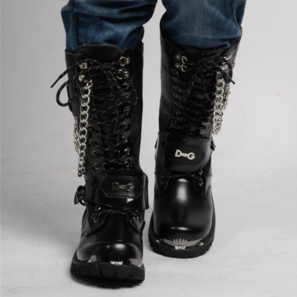 Mid Calf Metal Chain Male Motorcycle Punk Boots