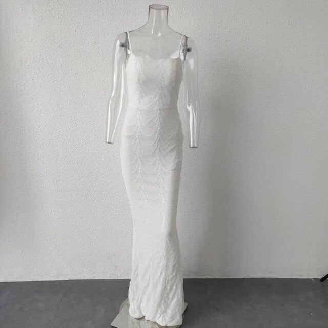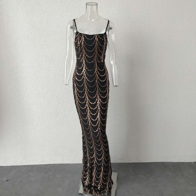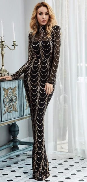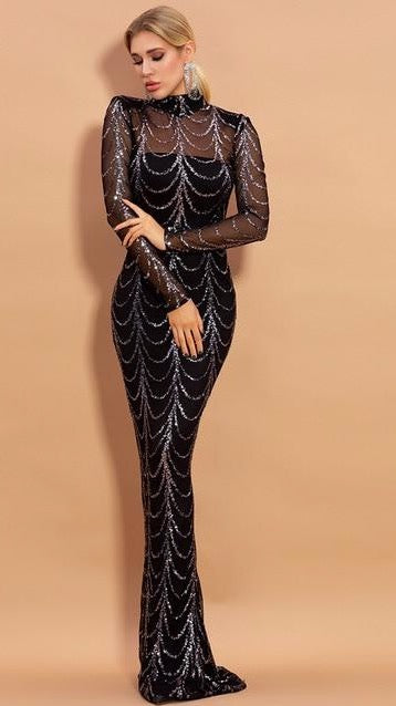 High Neck Wave Sequins See Though Women Maxi Dresses