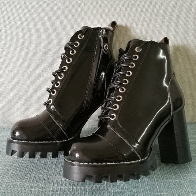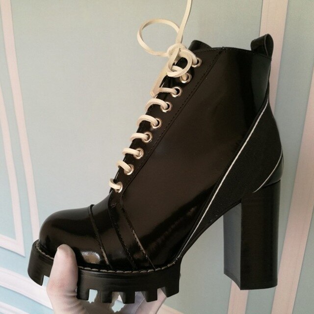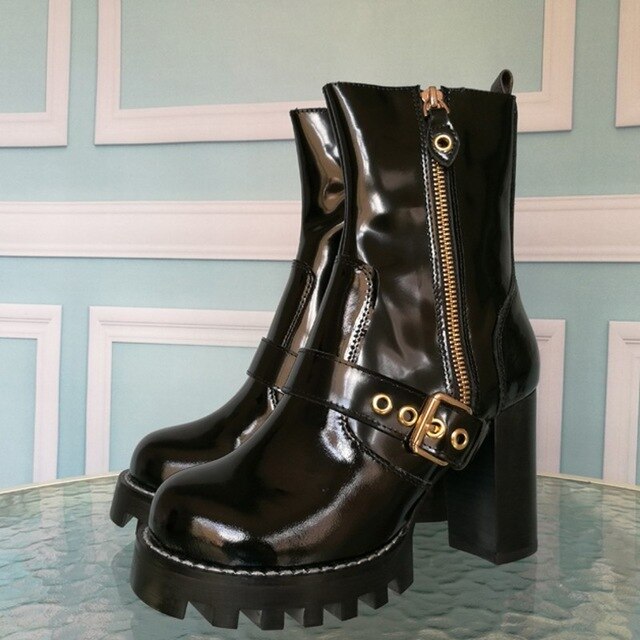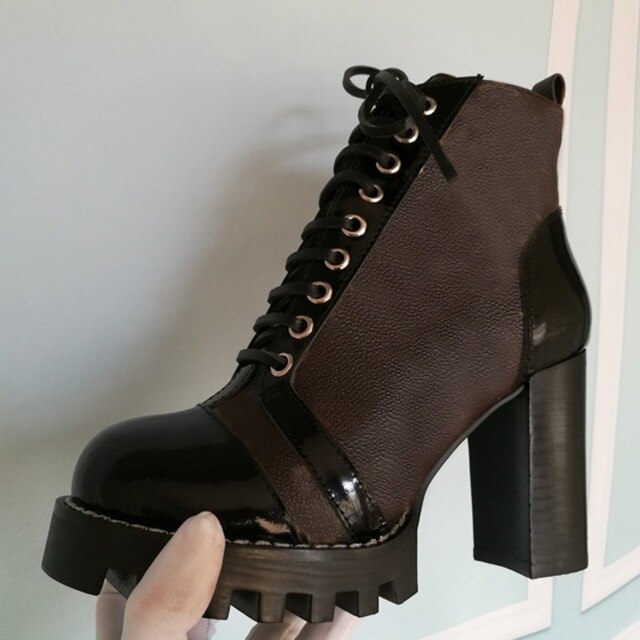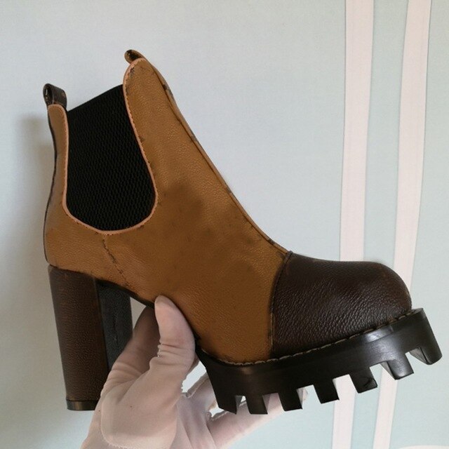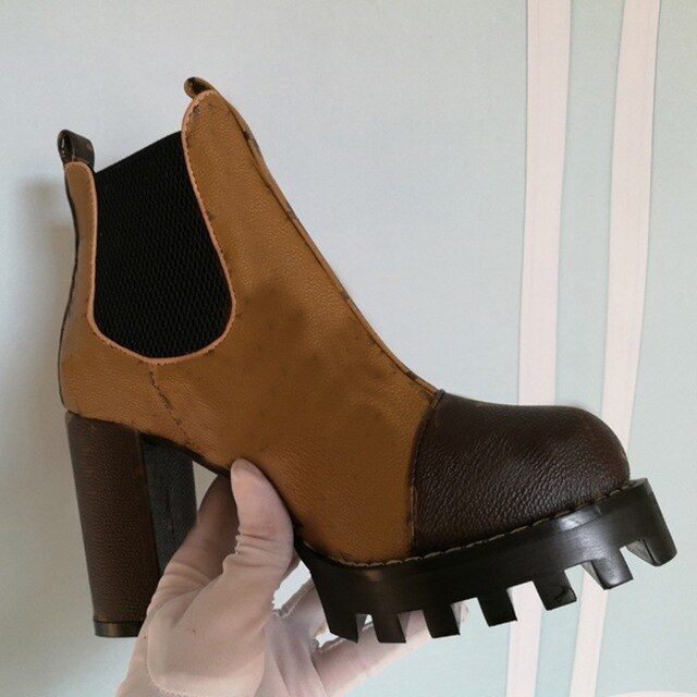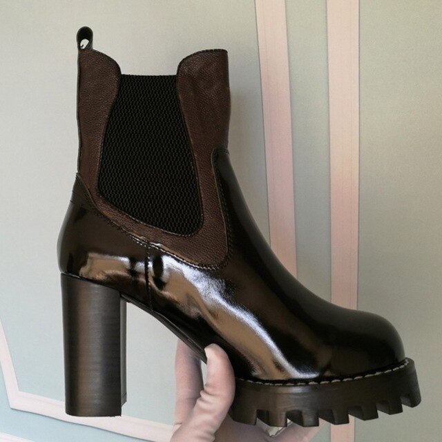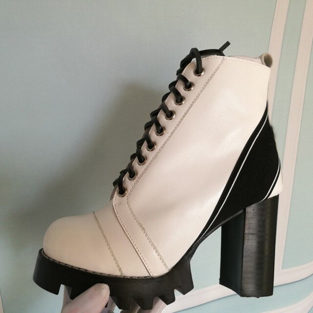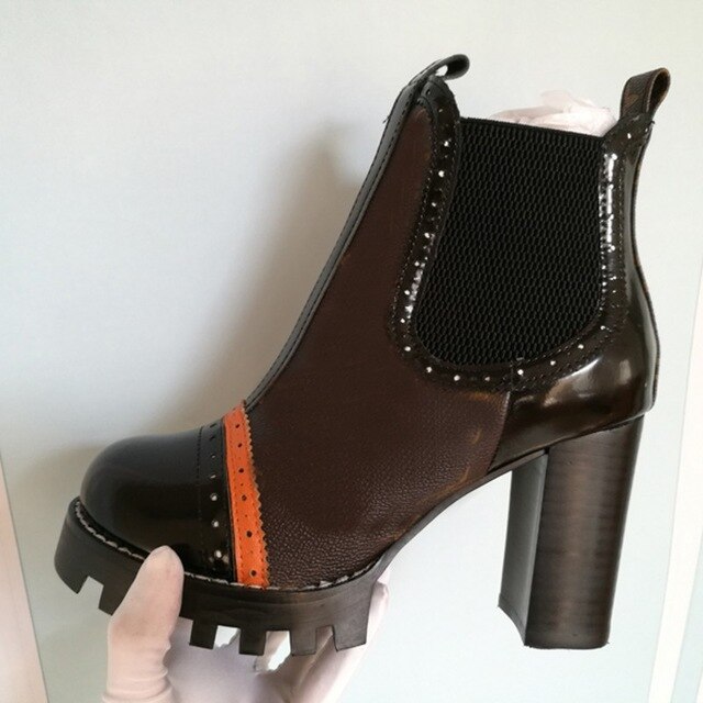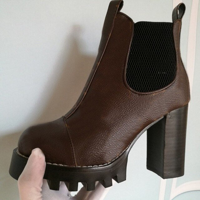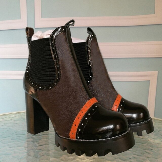 Mixed Colors Women High Heel Ankle Boots Round Toe Thick Bottom