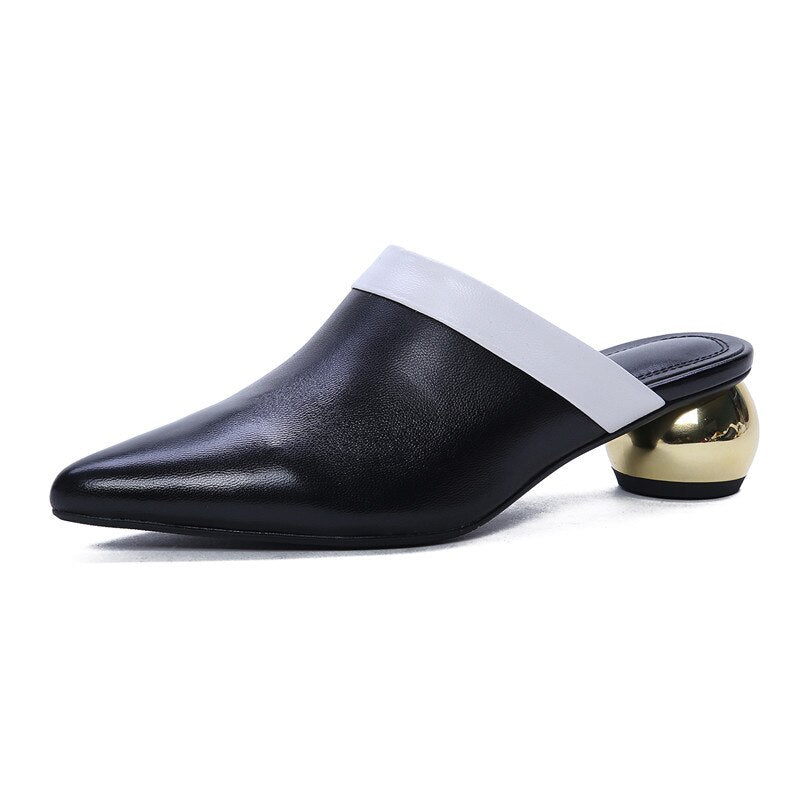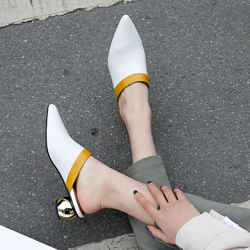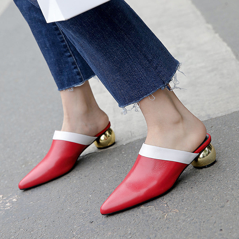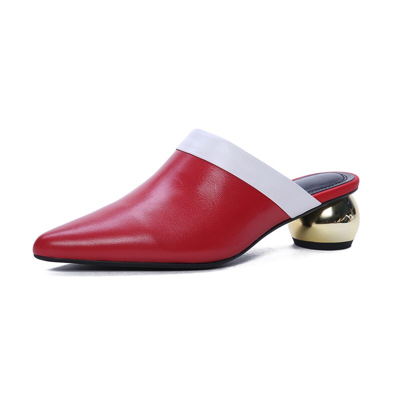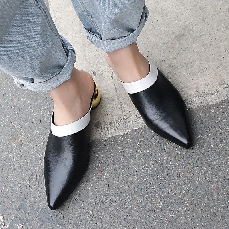 new arrival genuine leather mules shoes woman mixed colors summer shoes pointed toe fashion party women pumps