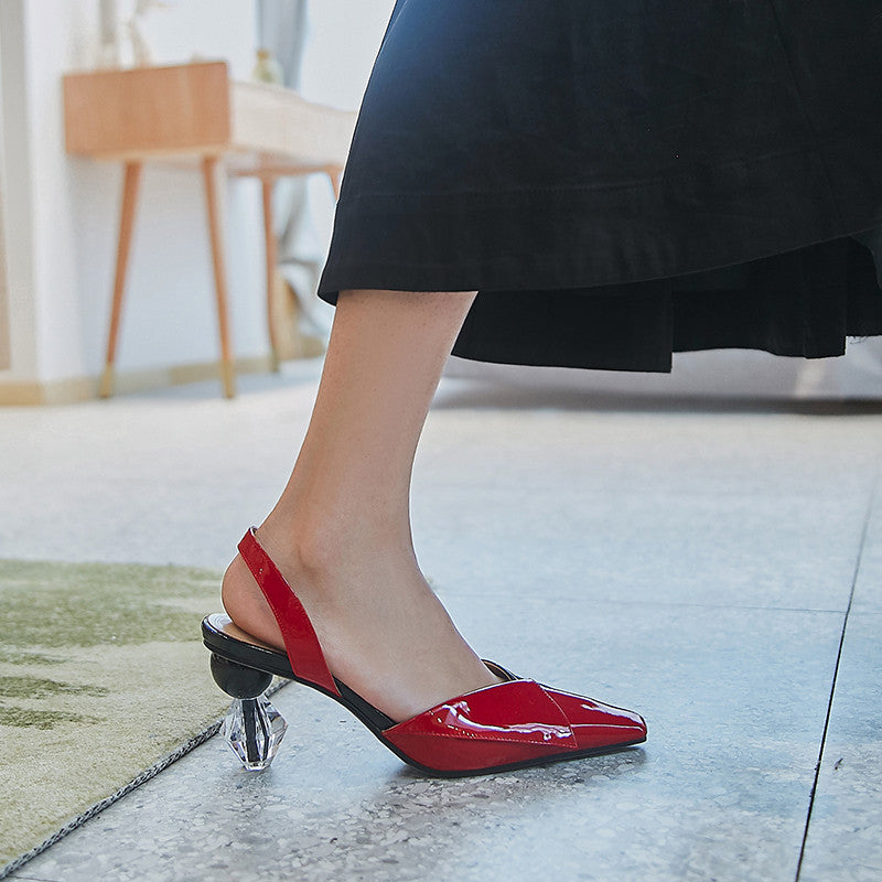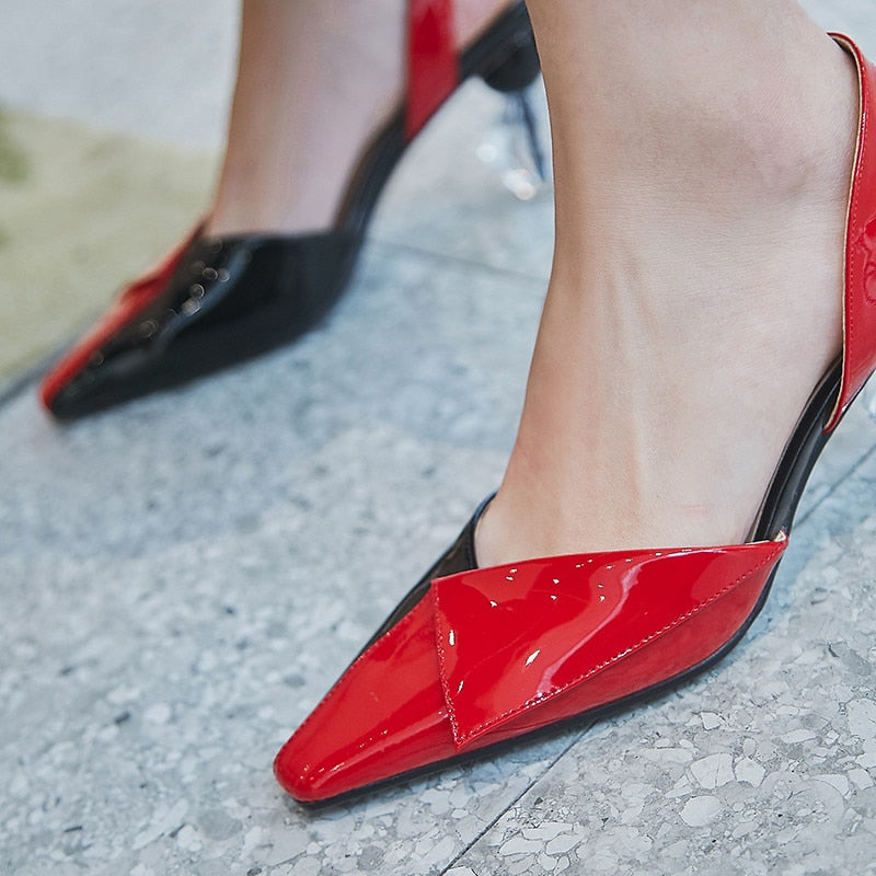 new arrival unique high heels sandals women patent leather shoes slip on summer sandals party wedding shoes woman