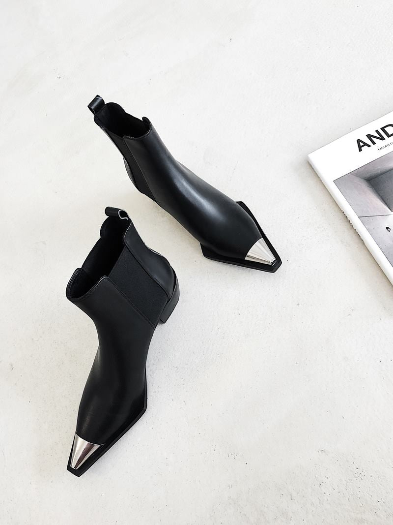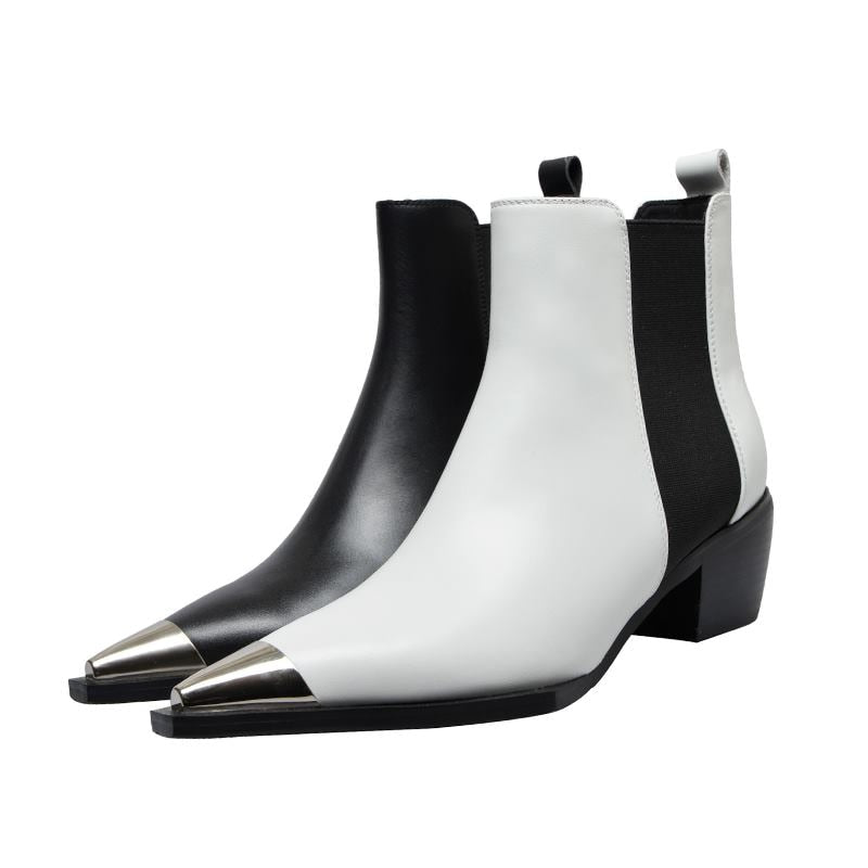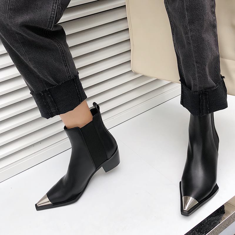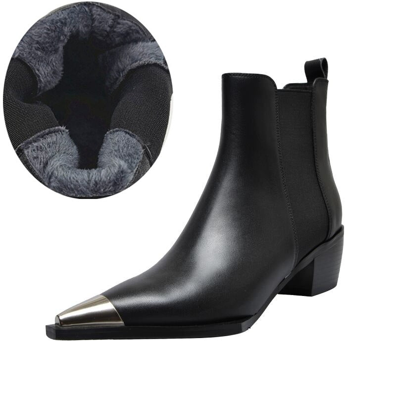 Natural Genuine leather boots women metal pointed toe ladies ankle boots for women square heels spring autumn shoes