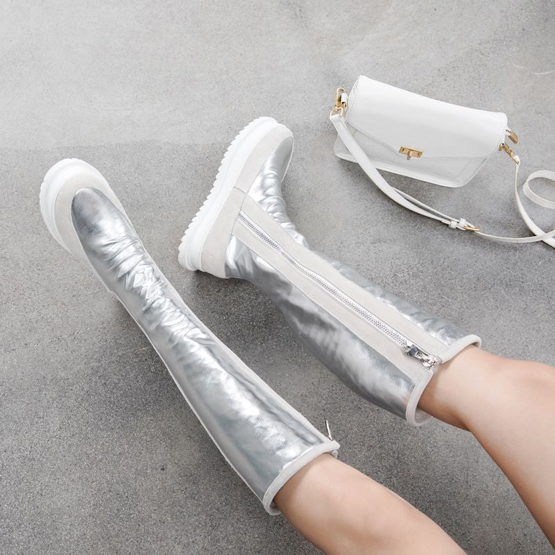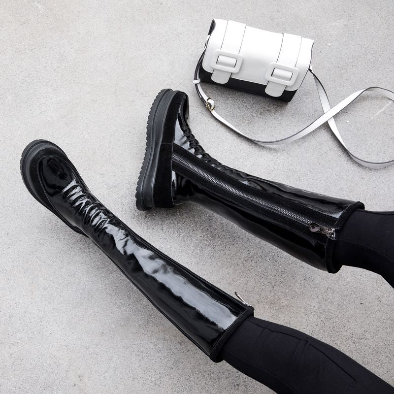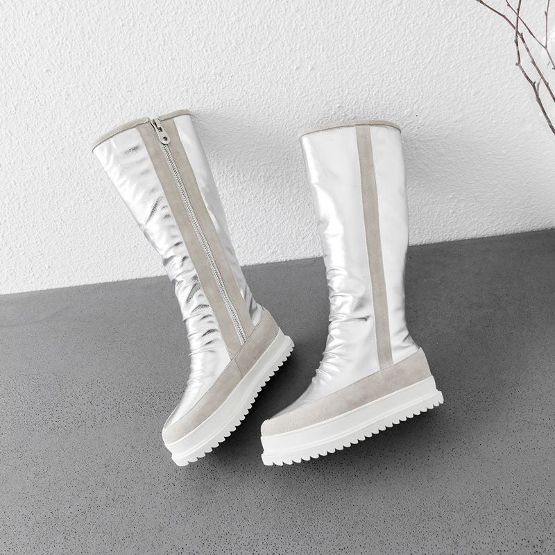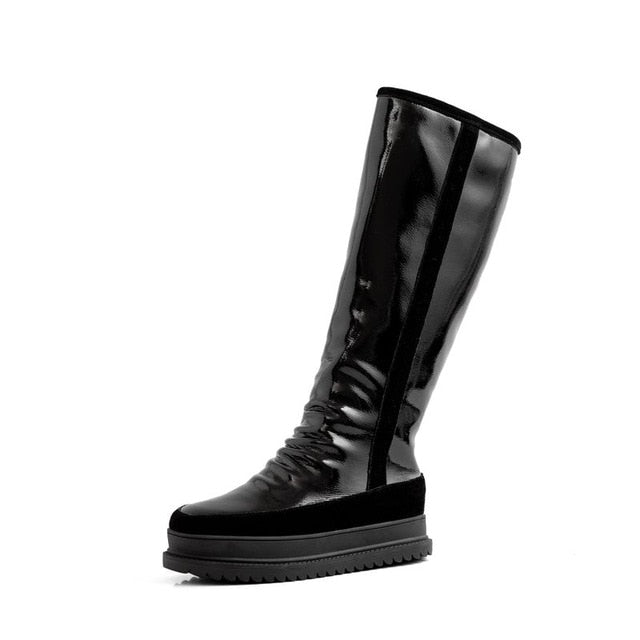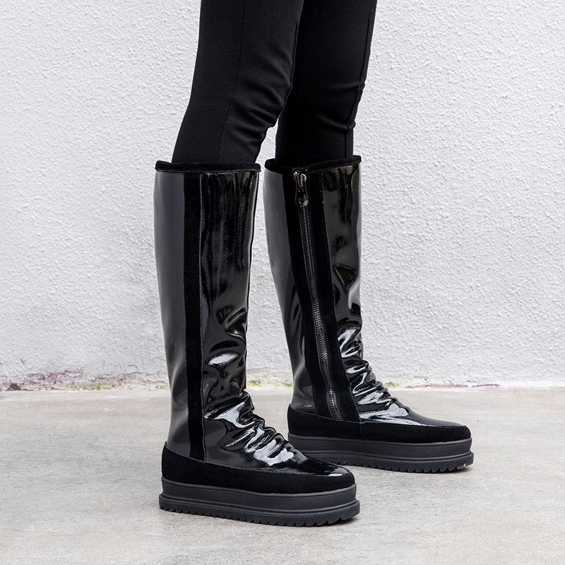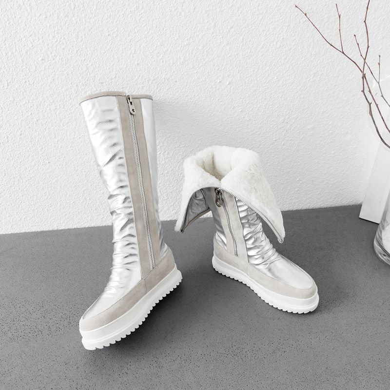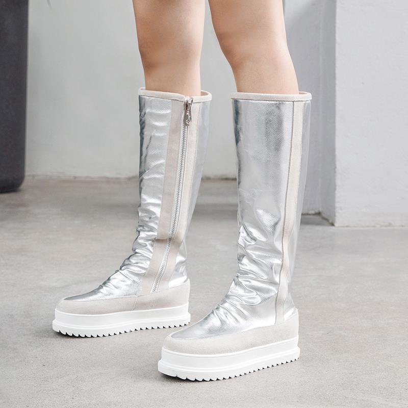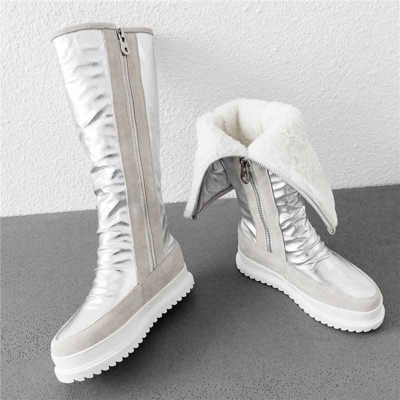Plus size 34-43 New cow genuine leather boots women zipper nature wool warm snow boots ladies knee high winter boots