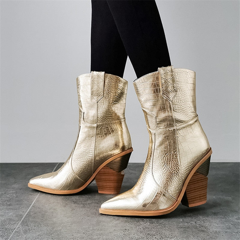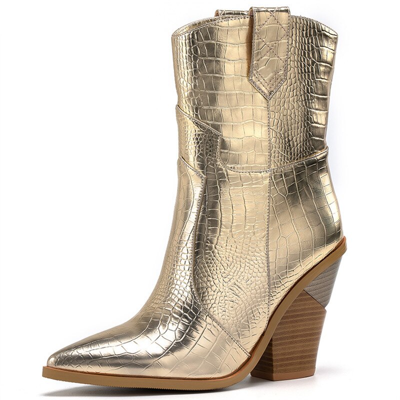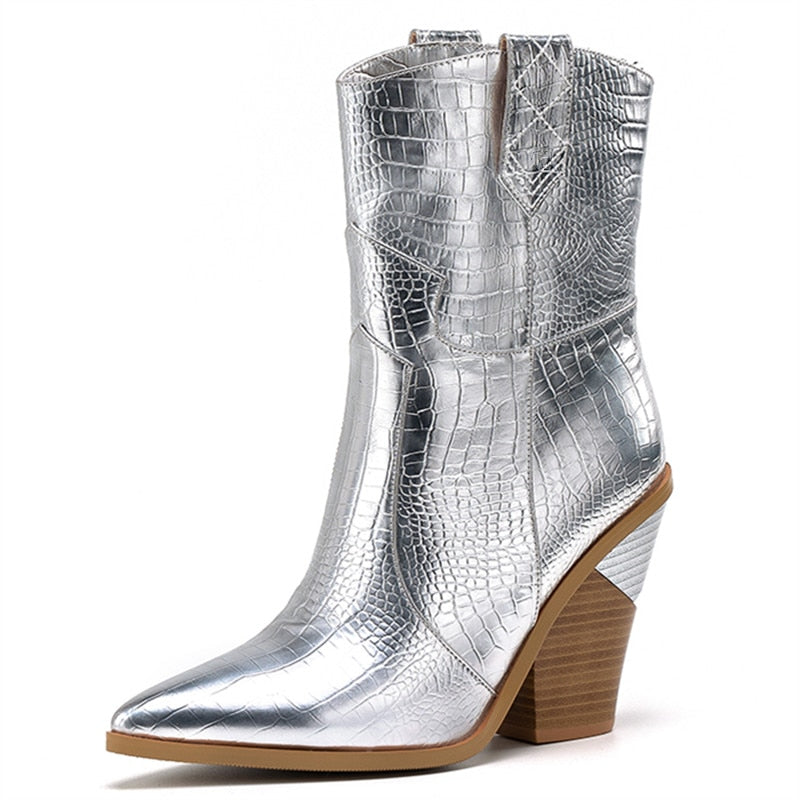 Size 34-46 New Brand ankle boots for women thick high heels ladies autumn winter boos gold silver fashion women boots