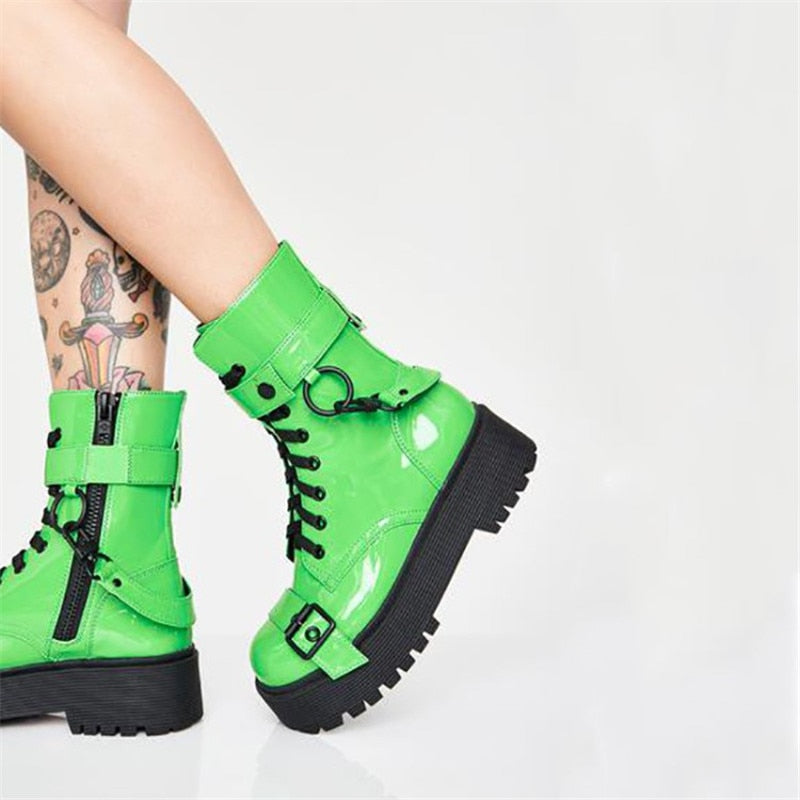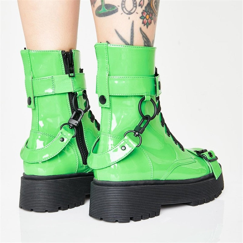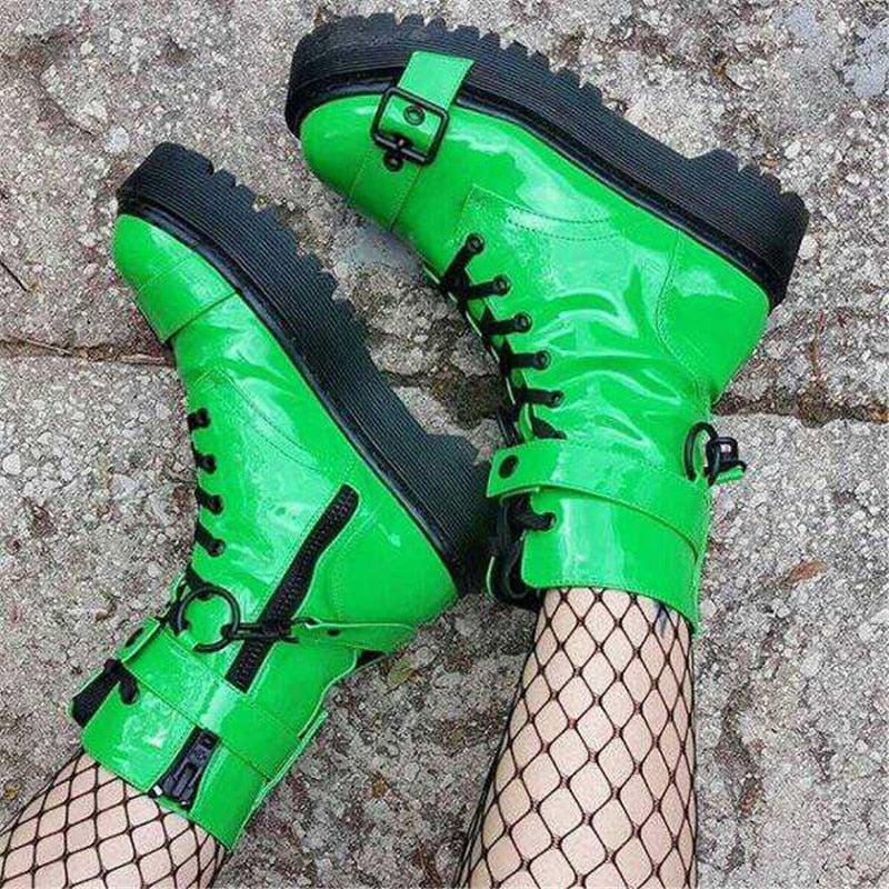 Women Fashion Ankle Boots For Women Night Club Platform Buckle Cross-Tied Shoes Woman High Heels Fluorescent Green Boot