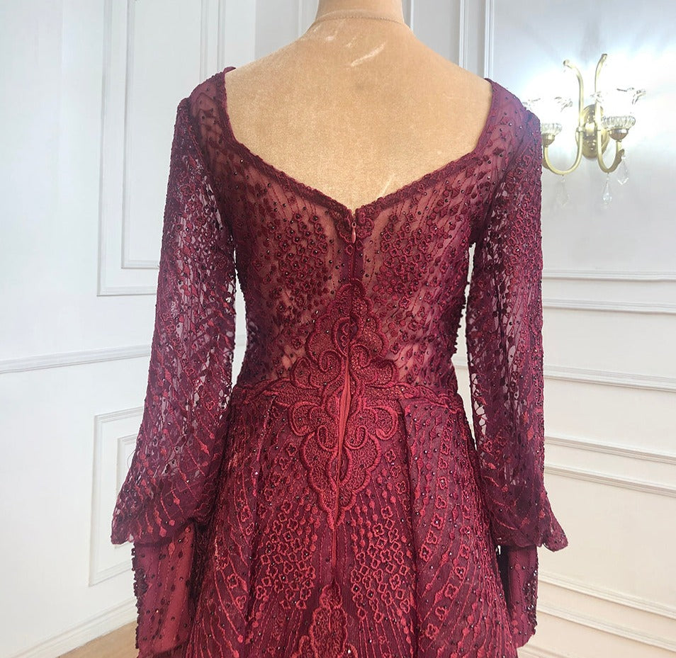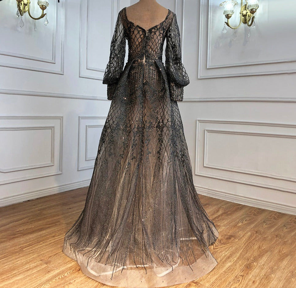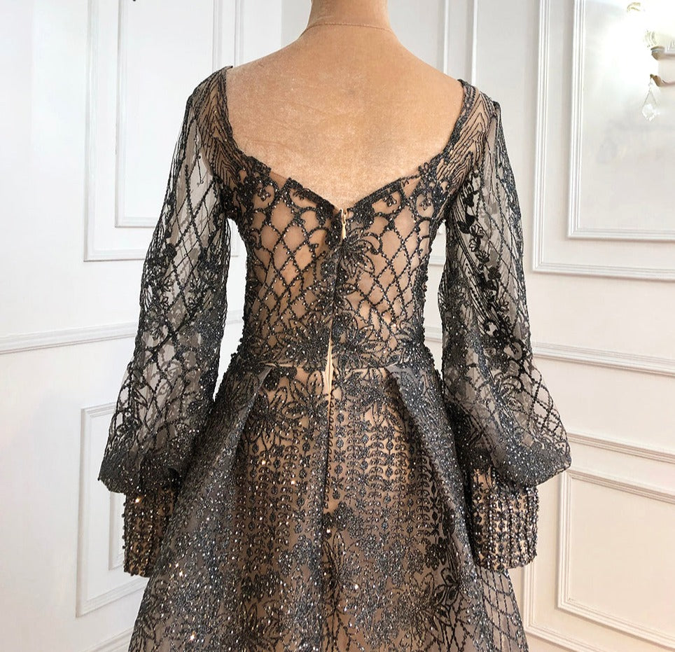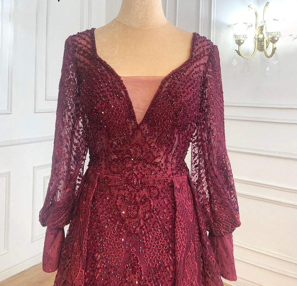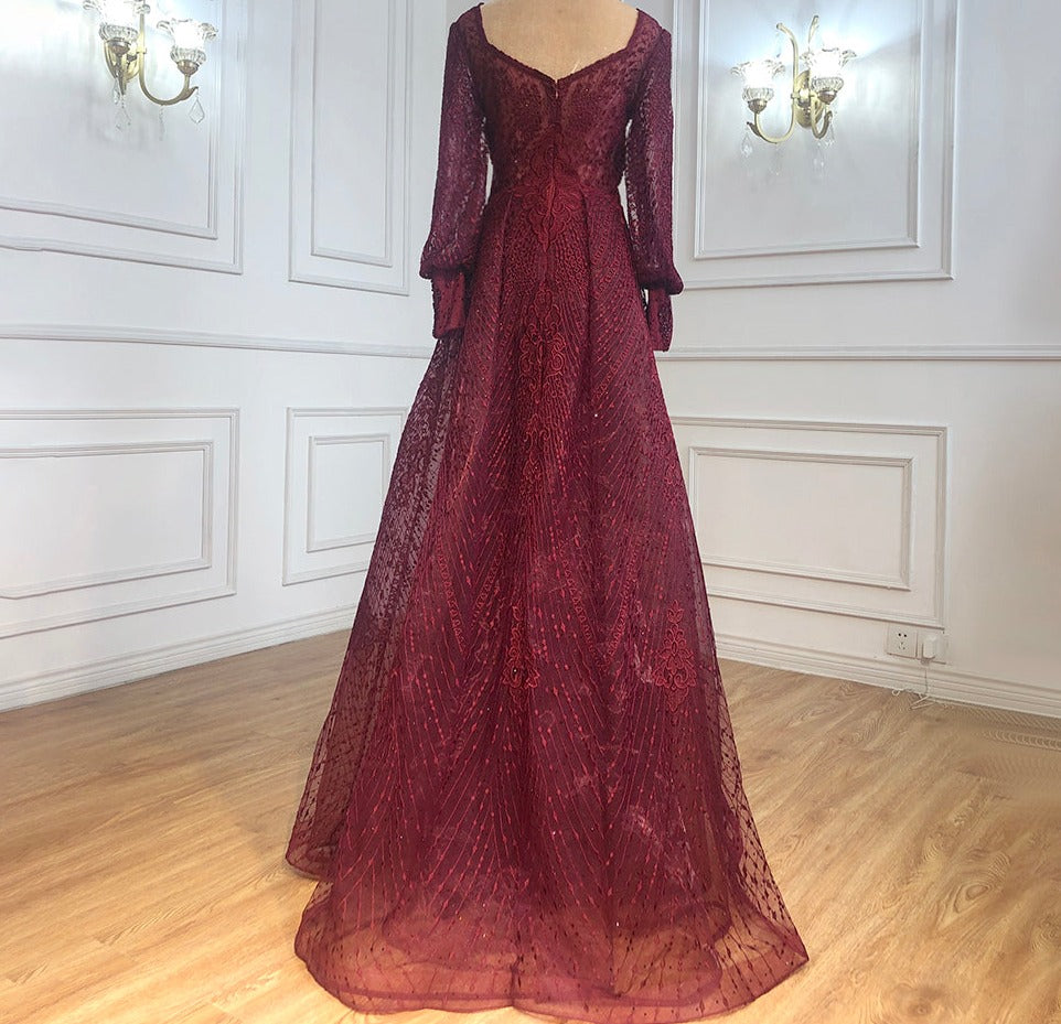 Muslim Luxury Blue Evening Dresses Gowns Long Sleeves