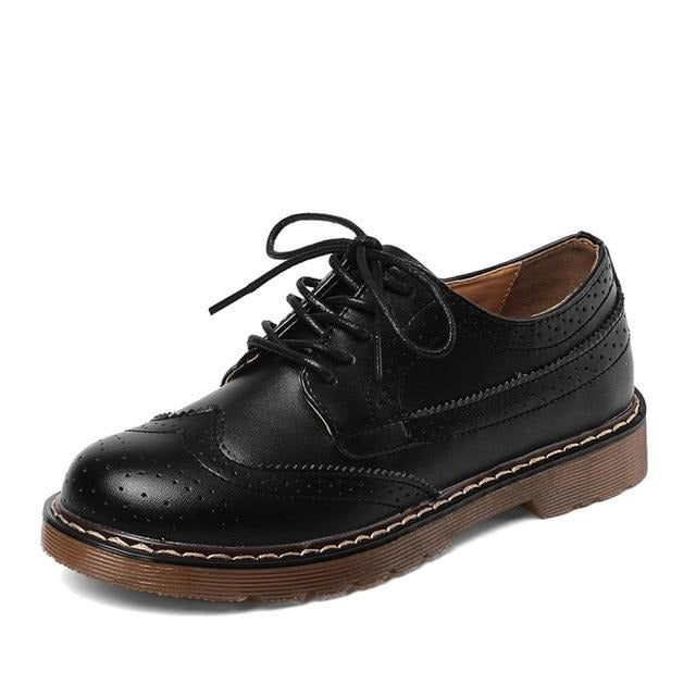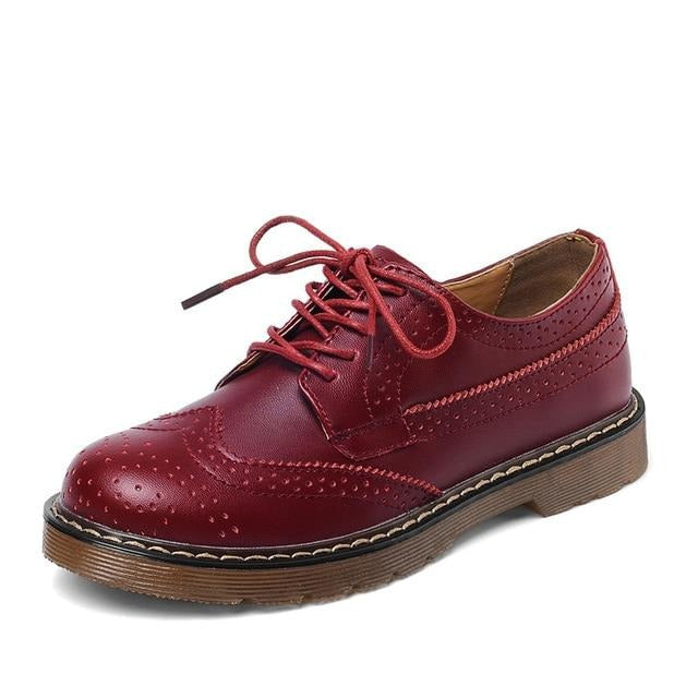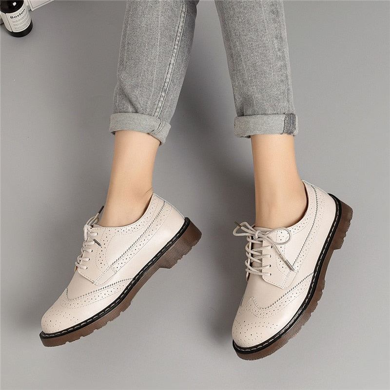 Women Oxford Flats Shoes Genuine Leather Vintage Casual Shoes Spring Autumn Lace up
