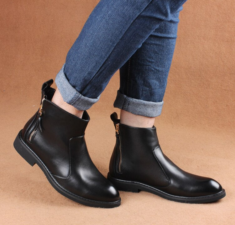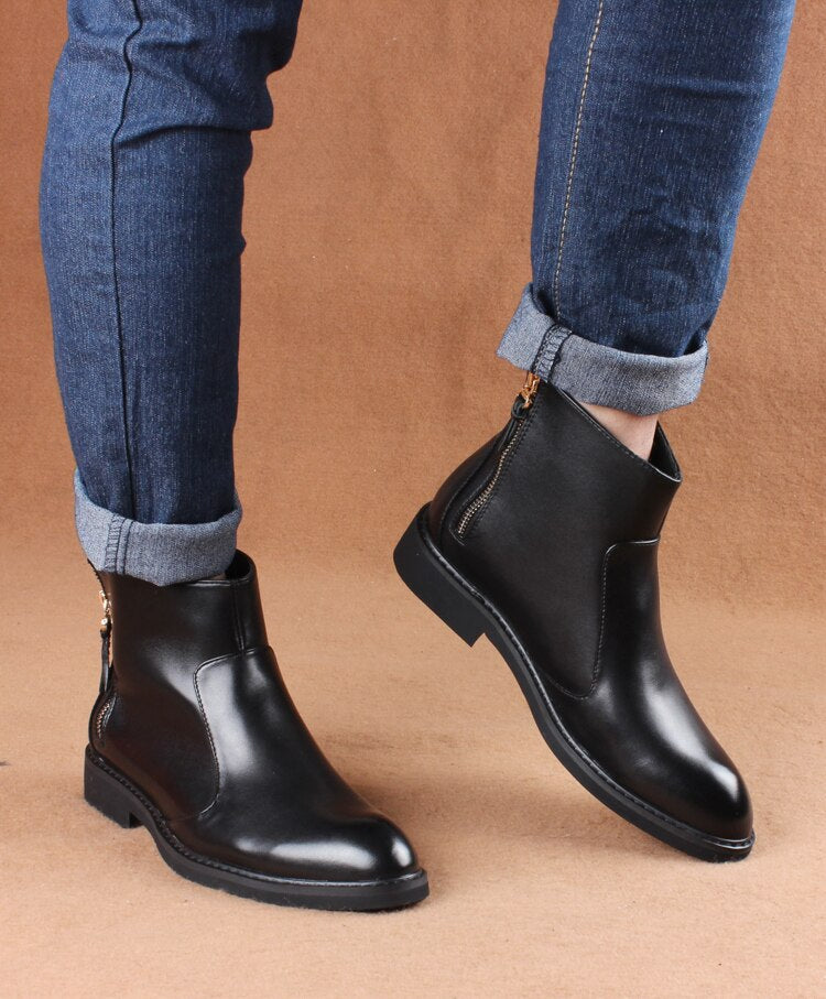 new arrival men's black ankle boots natural leather shoes spring autumn high top shorts boot chaussure homme botines hombre bota