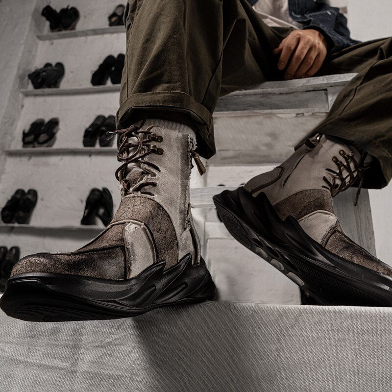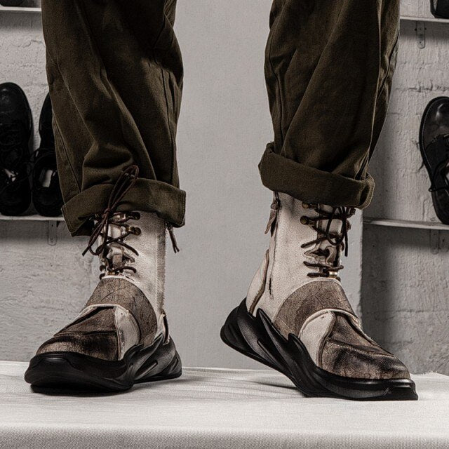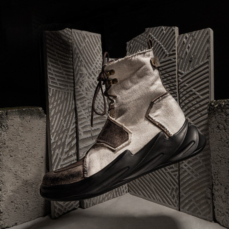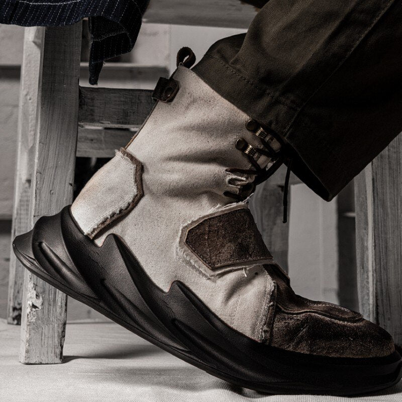 Mens Canvas Patchwork Genuine Leather Ankle Boots