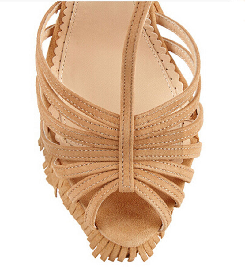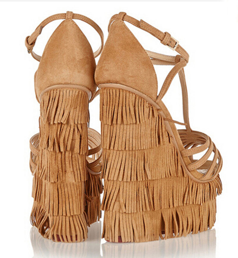 new fashion cut-outs cross strap tassels wedge sandals high platform height increasing woman sandal shoes