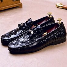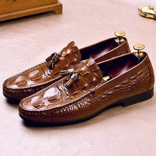 New Fashion Genuine Leather Men's Casual Loafers Round Toe Slip on Man Handmade Alligator Pattern Tassels Driving Shoes