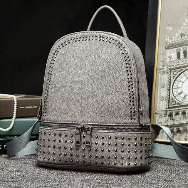 New Fashion Rivet Women Backpack Ladies Backpack Genuine Leather Casual Korean Female Travel Bag Large Capacity Girl School Bag