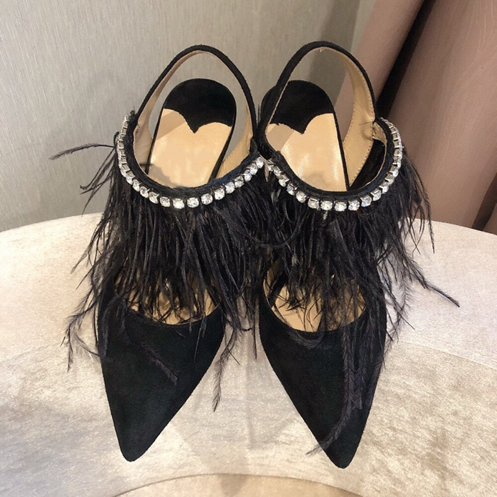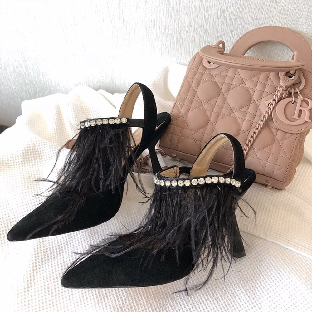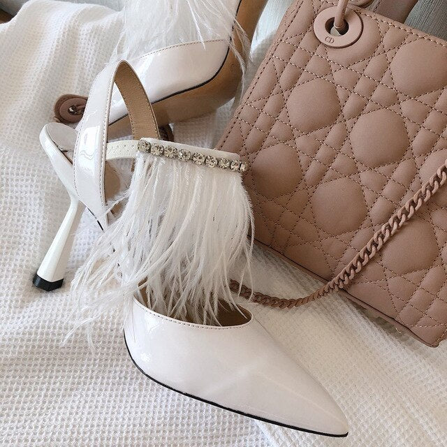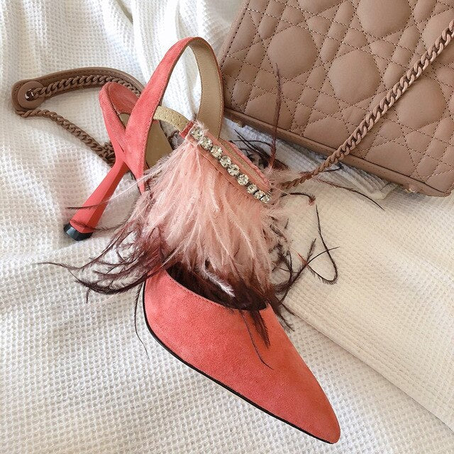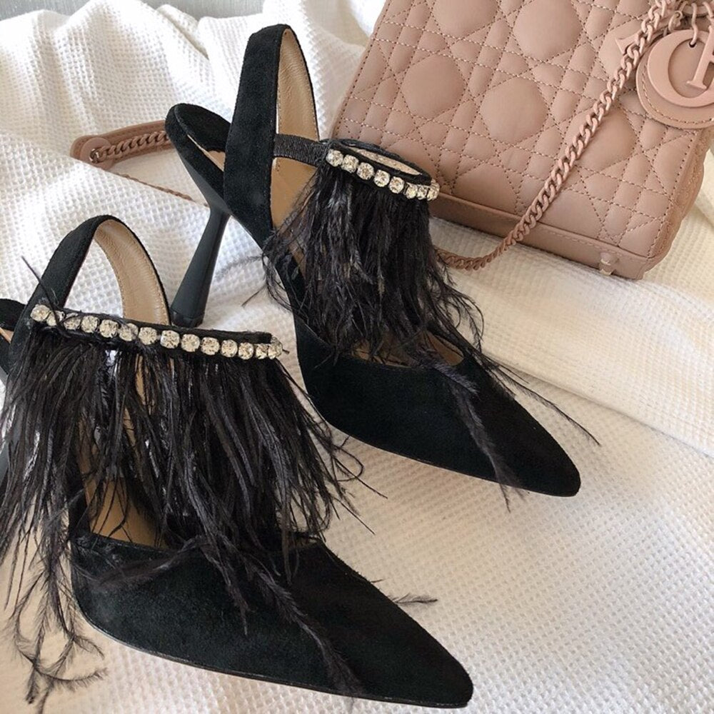 New Fashion Women's Pumps Pointed Toe High Heels Pumps Kid Suede Leather Women's Shoes Crystal Ankle Straps Summer Shoes 34-41