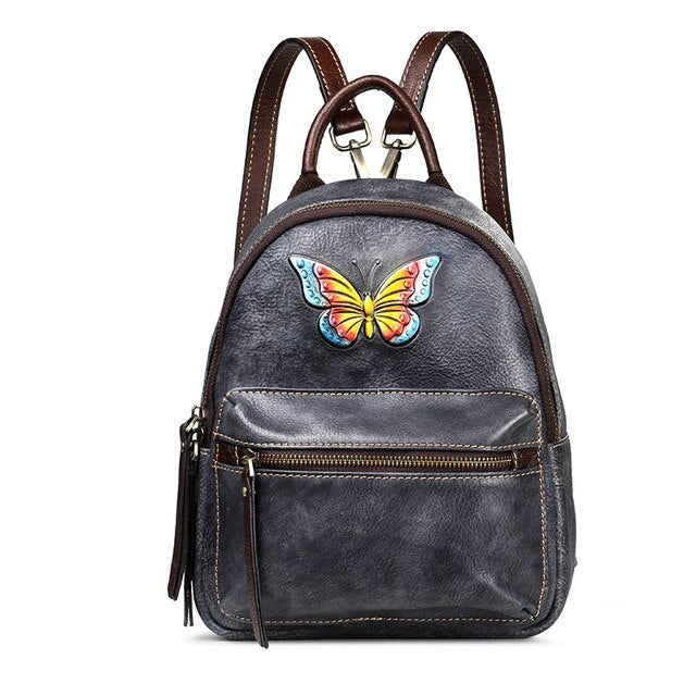 New Genuine leather Women backpack shoulder bag female first layer leather retro butterfly small backpacks casual female bags