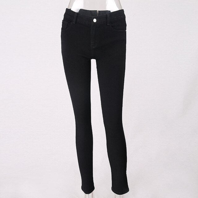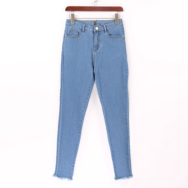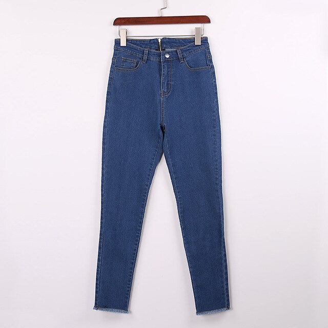 New Hot Sexy Back Zipper Long Jeans Women Basic Classic High Waist Skinny Pencil Blue Denim Pants Elastic Stretch Jeans