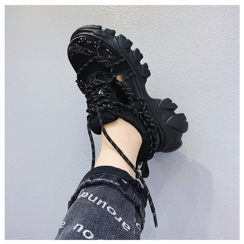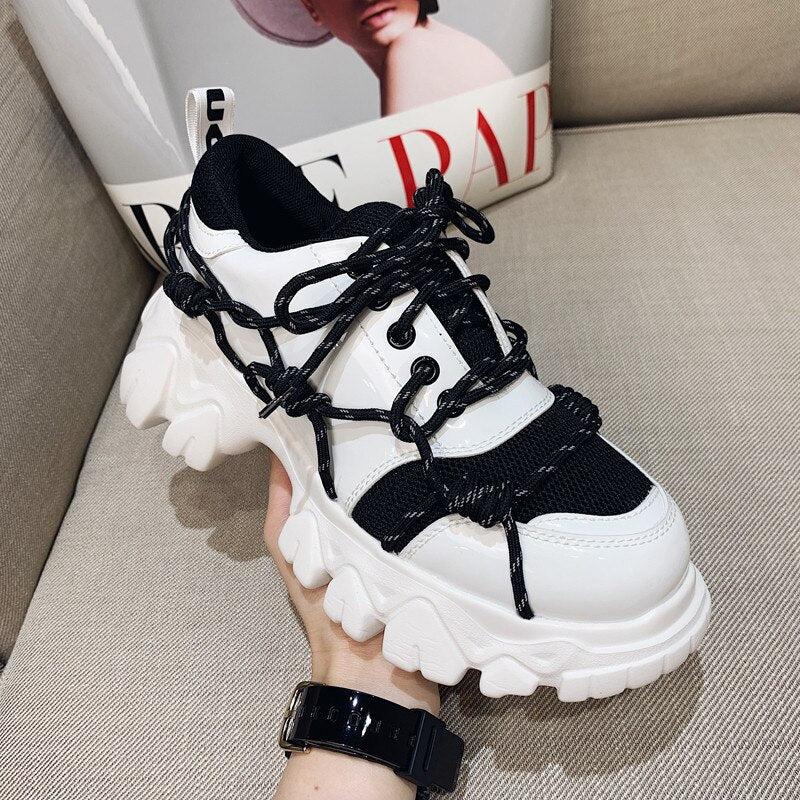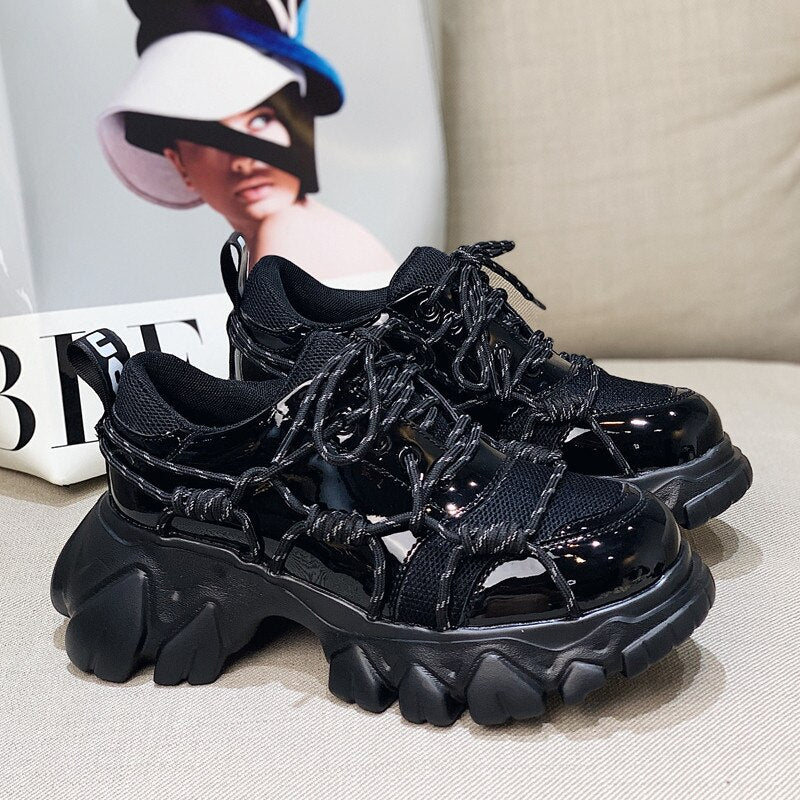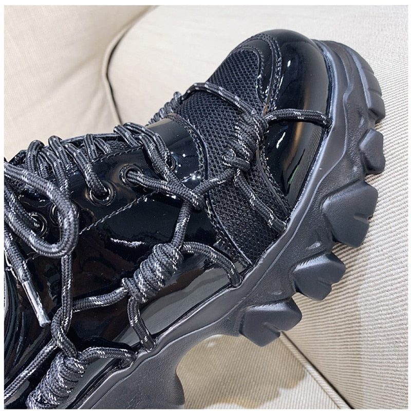 New Patent Leather Women Casual Old Harajuku Shoes Punk Thick Bottom Increased Lady Flat Platform Sports Sneakers Shoes Creepers