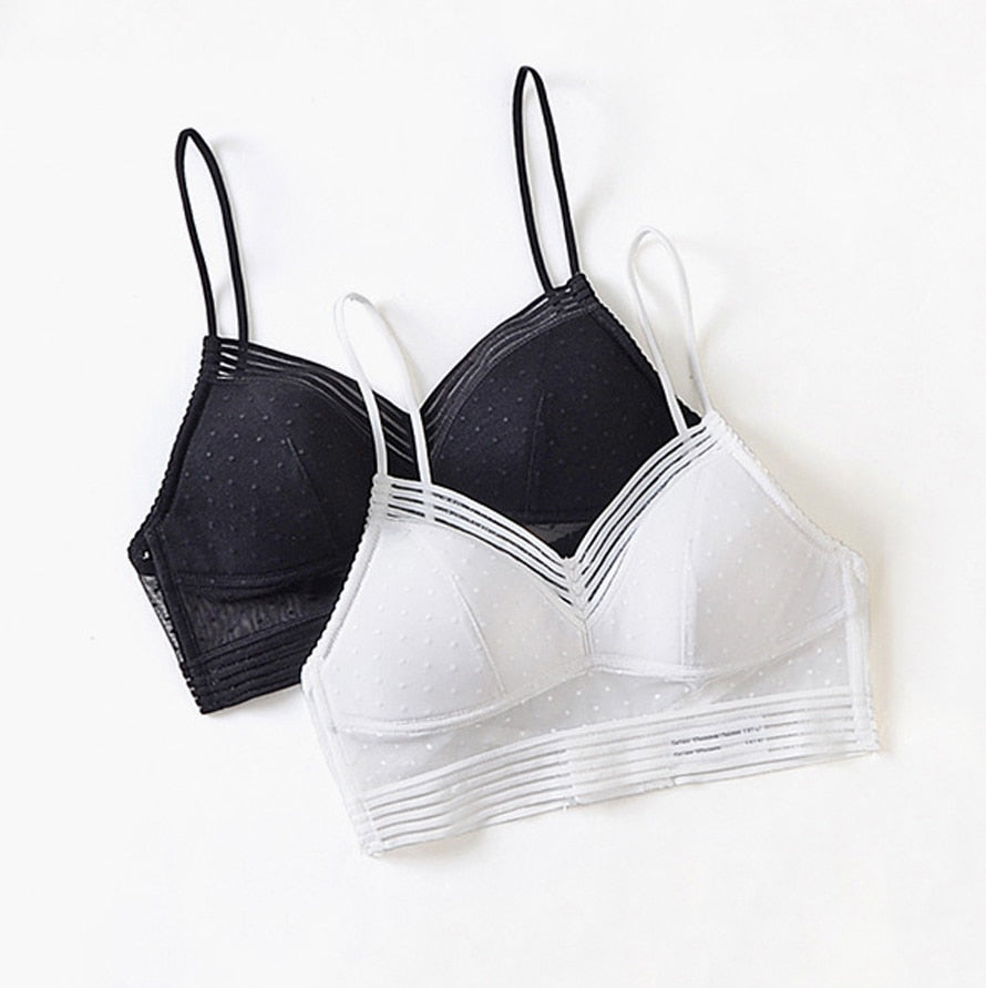 New Sexy Low Back Lace Bralette White Backless Bra dot mesh Ultra Thin Underwear Women Lingerie Sexy Tank Tops Bra