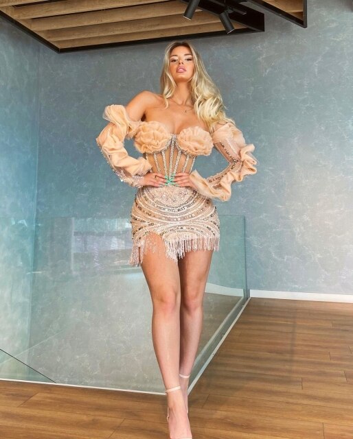 Crystals Tulle Pleated Women Pageant Party Night Gowns