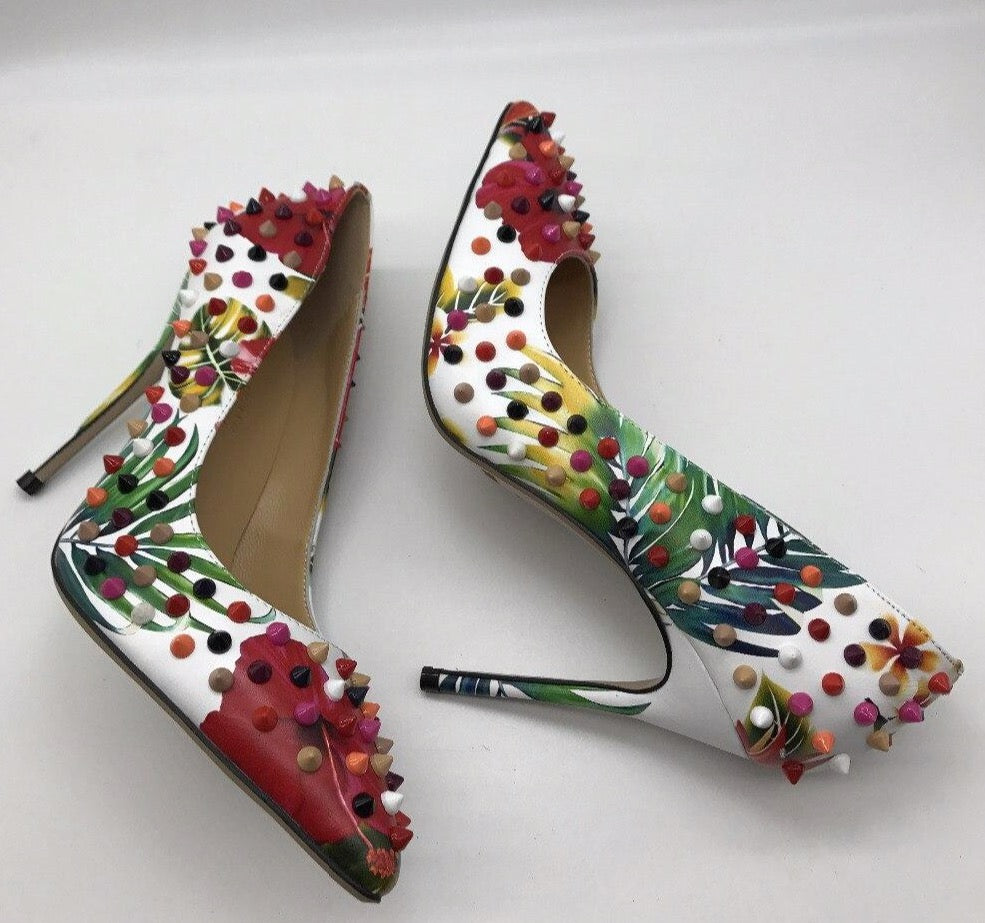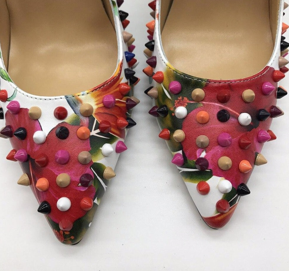 New Style Rivet Women Pumps Genuine Leather Casual High Heels Fashion Wedding Shoes Woman Party