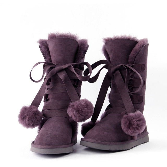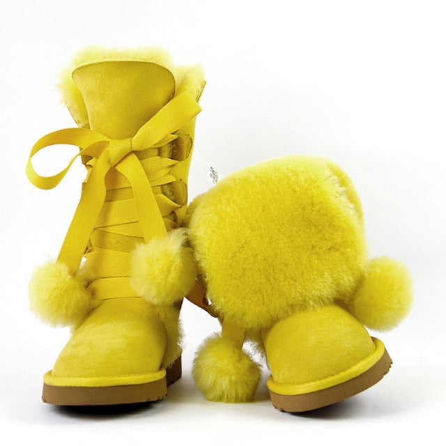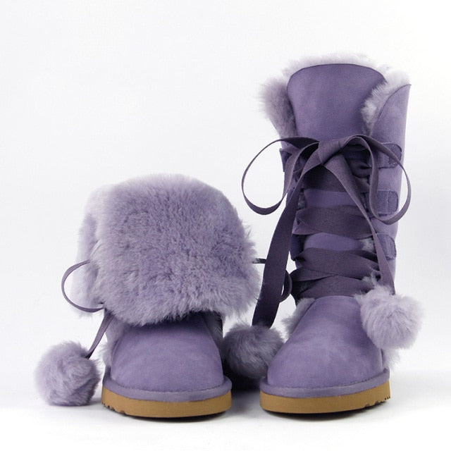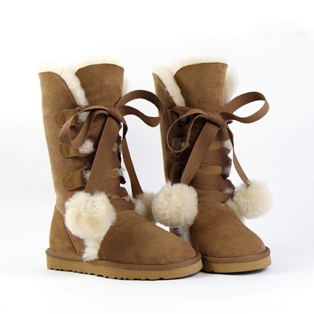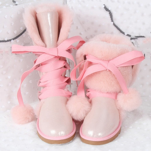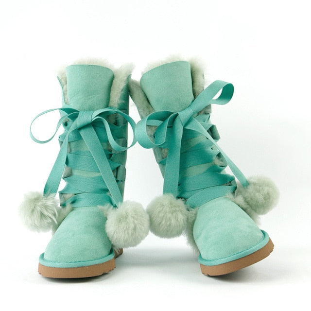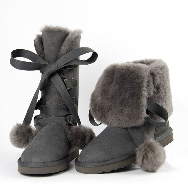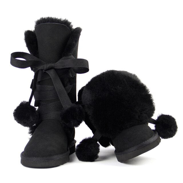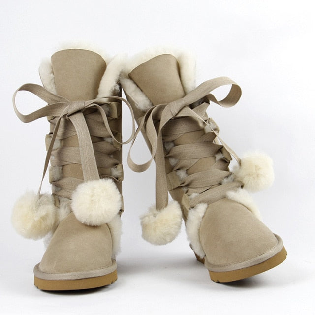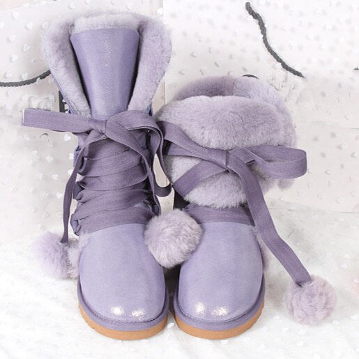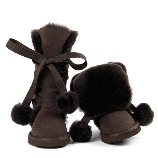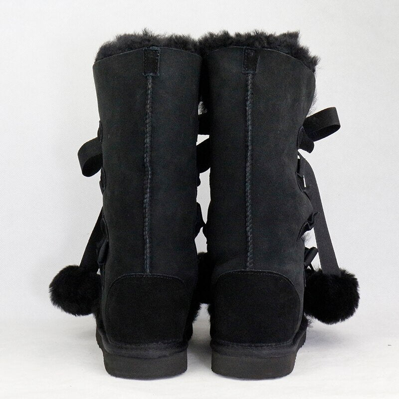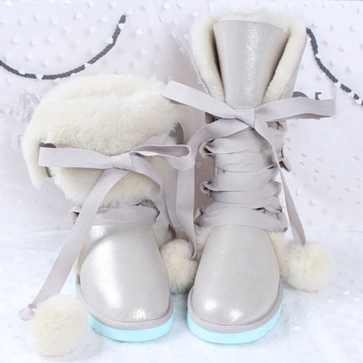 Women Genuine Sheepskin Leather Snow Boots