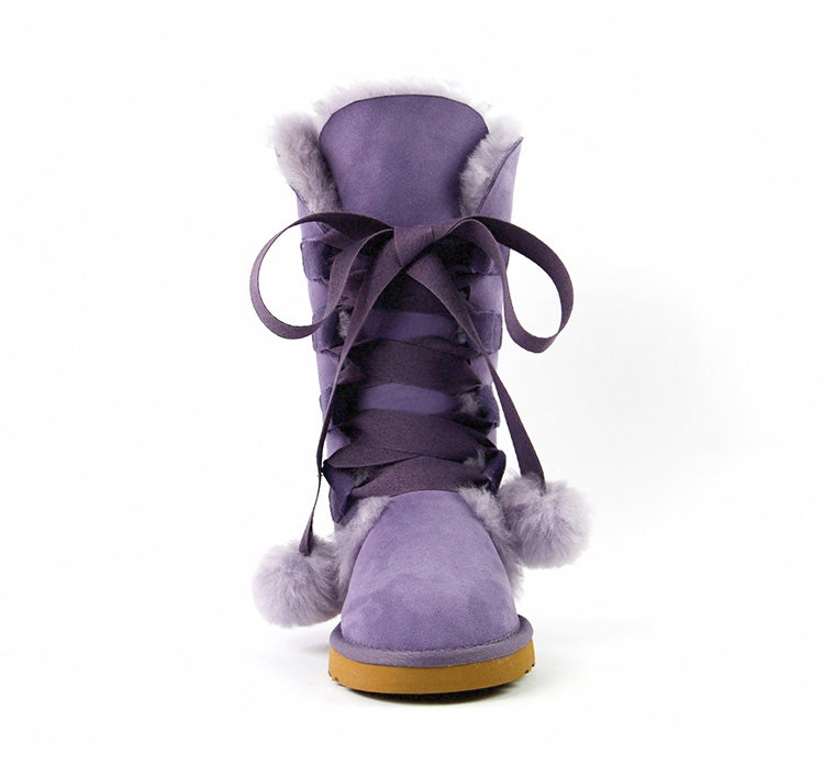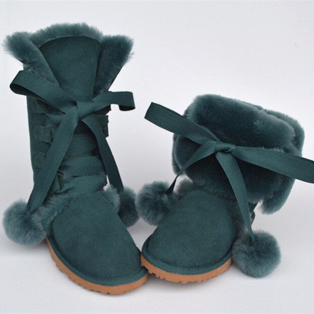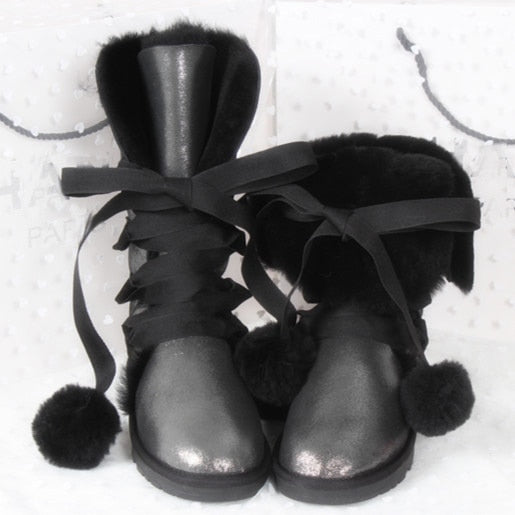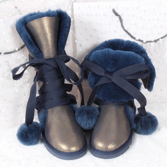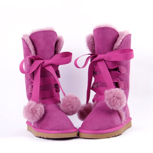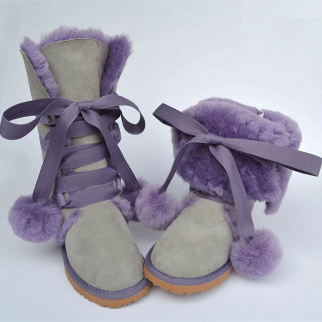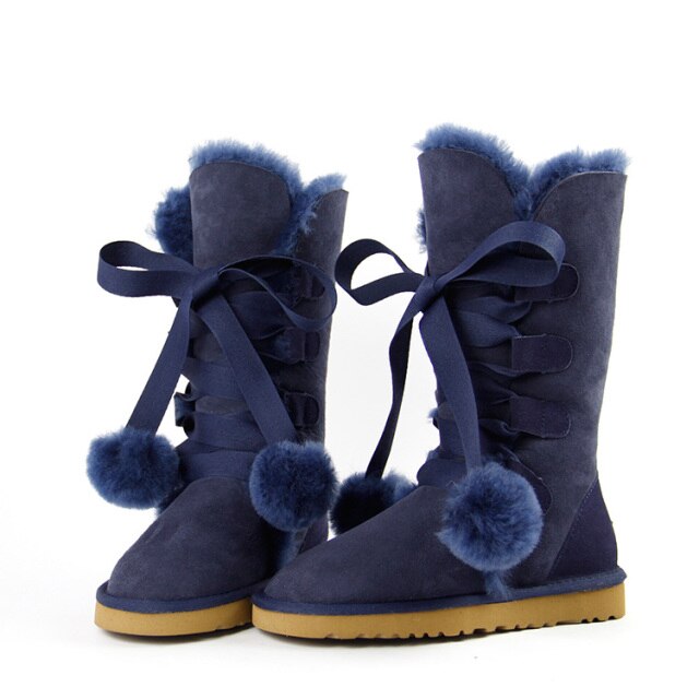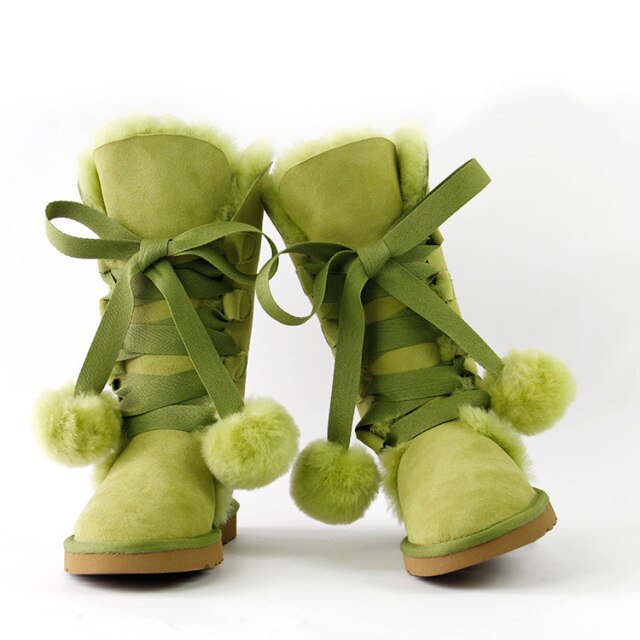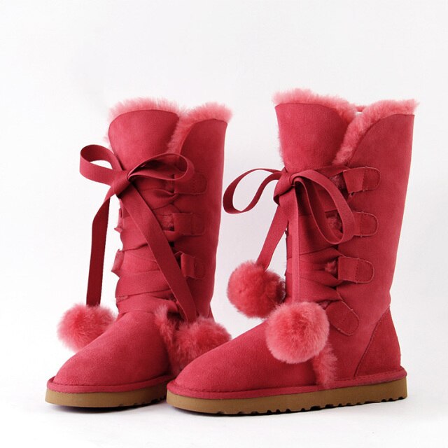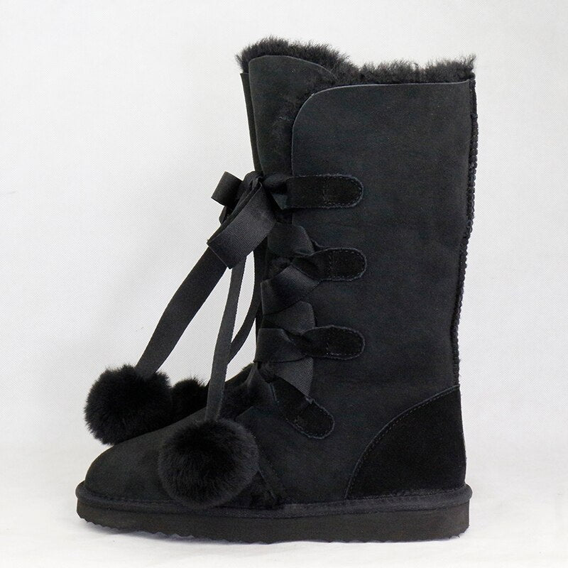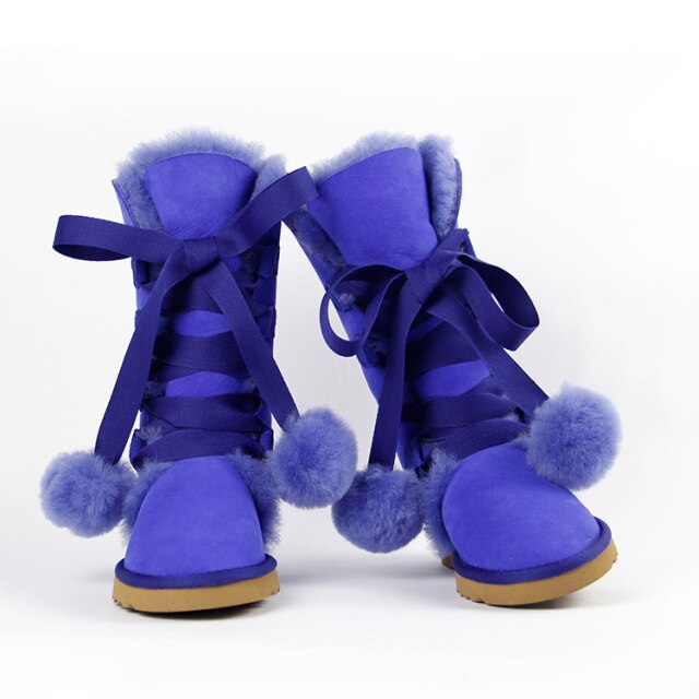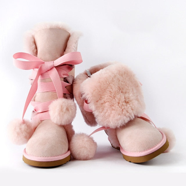 Women Genuine Sheepskin Leather Snow Boots