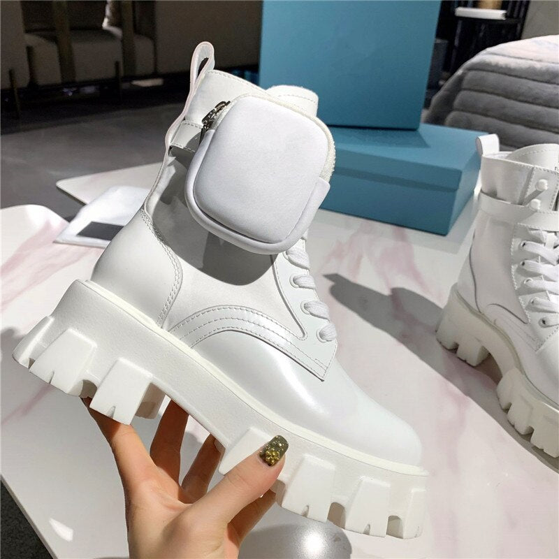 women's short boots round toe increased thick-soled